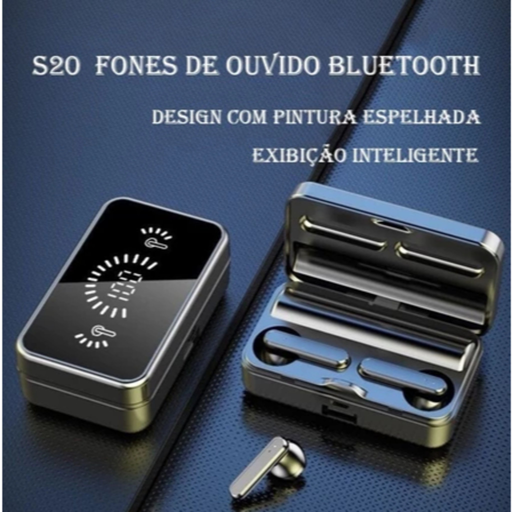 S20 Fones De Ouvido Sem Fio Bluetooth Reflexo LED Design Espelho TWS Touch Stereo Sports Earbuds À Prova D'água
