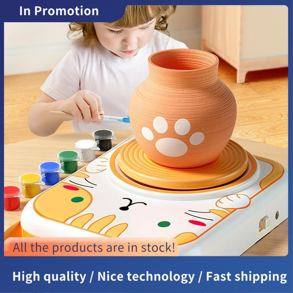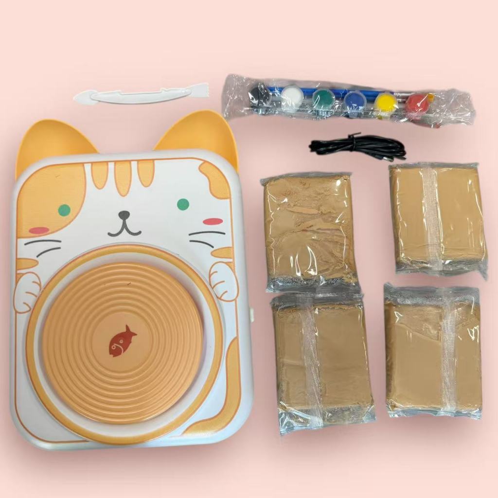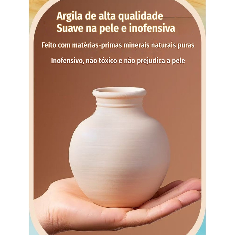 Roda de Cerâmica Elétrica Infantil - Kit 4 argilas, ferramentas e tintas, DIY iniciantes, educação STEAM
