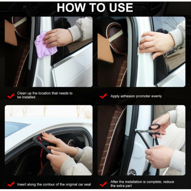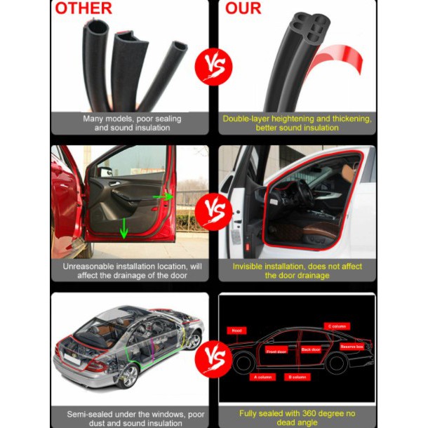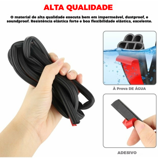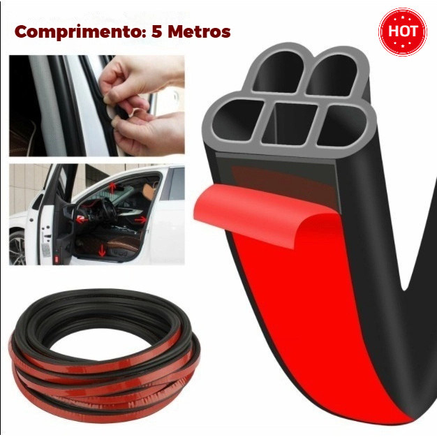 5M com 5 Furos Borracha Vedação Porta Carro Universal, Extra Grossa, Anti-Ruído, Uno Gol Palio HB20
