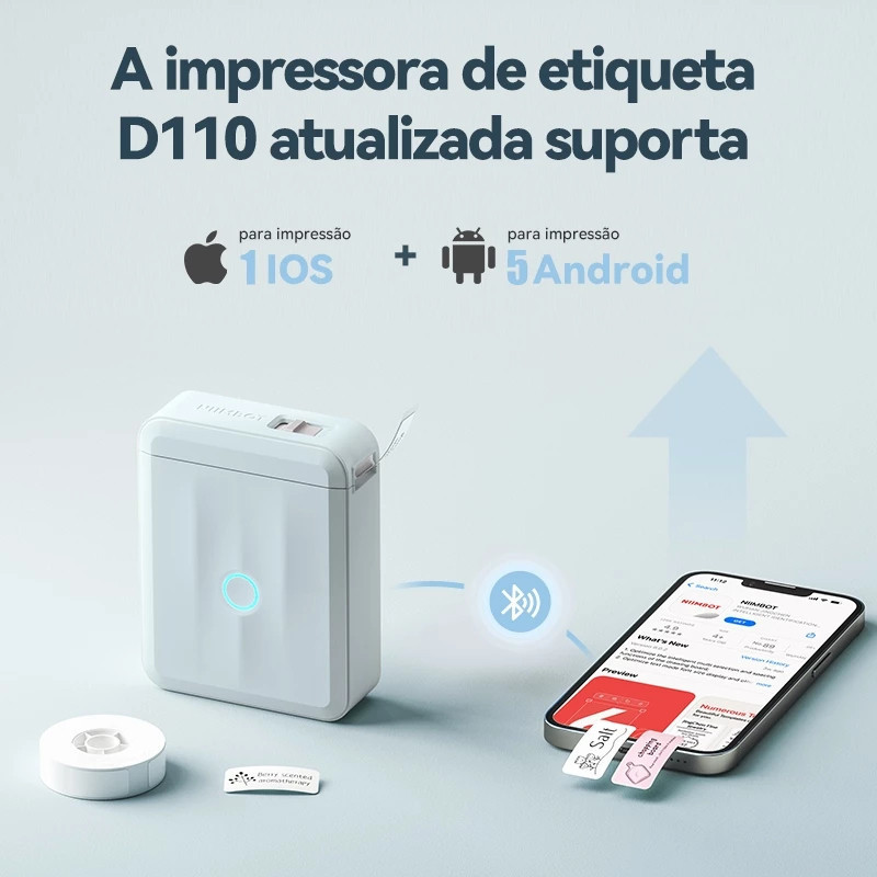 Niimbot D110 Impressora De Etiqueta Térmica Portátil Sem Fio Bluetooth + 1 Rolo Etiqueta REAL