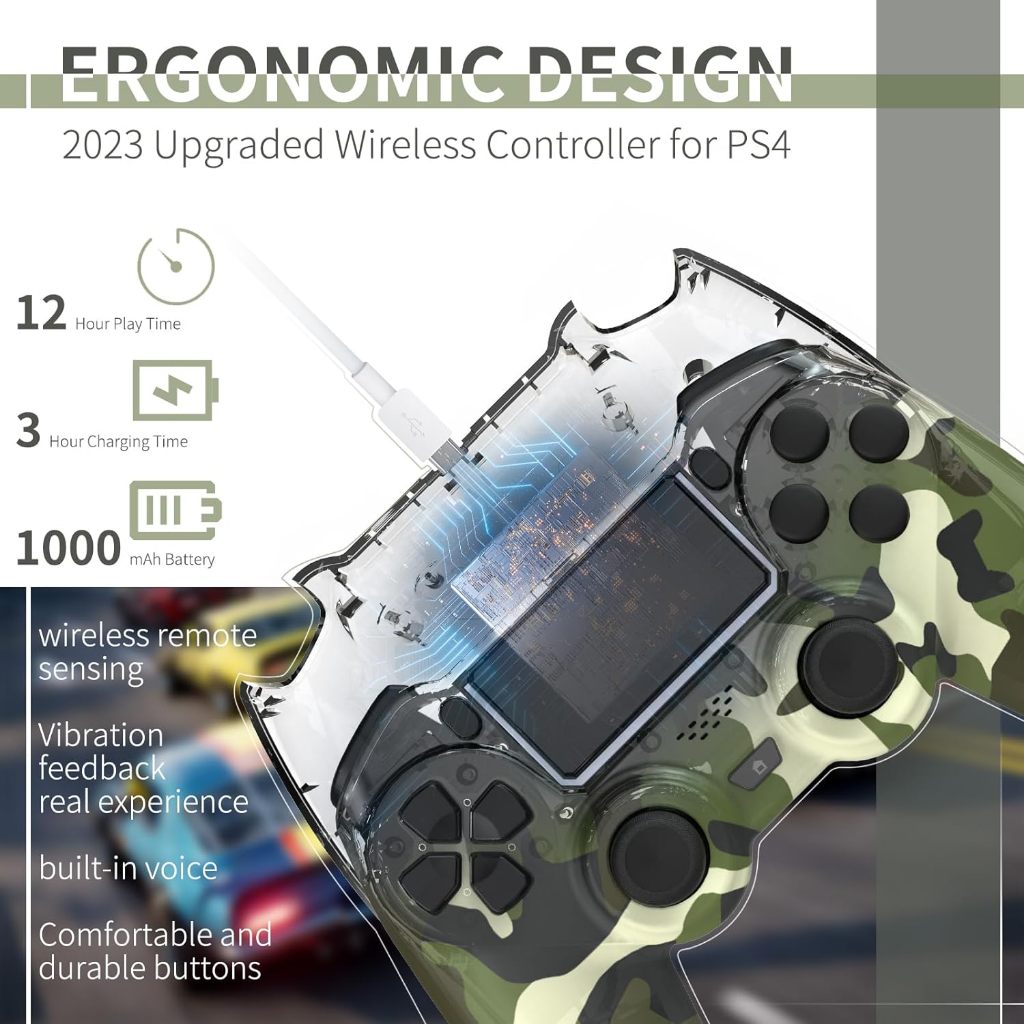 Controle camuflado compatível com Ps4 sem fio joystick com cabo carregável