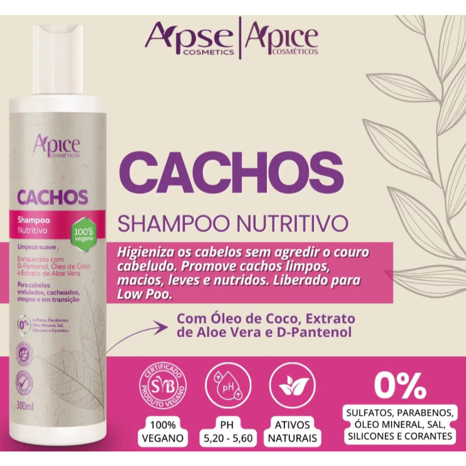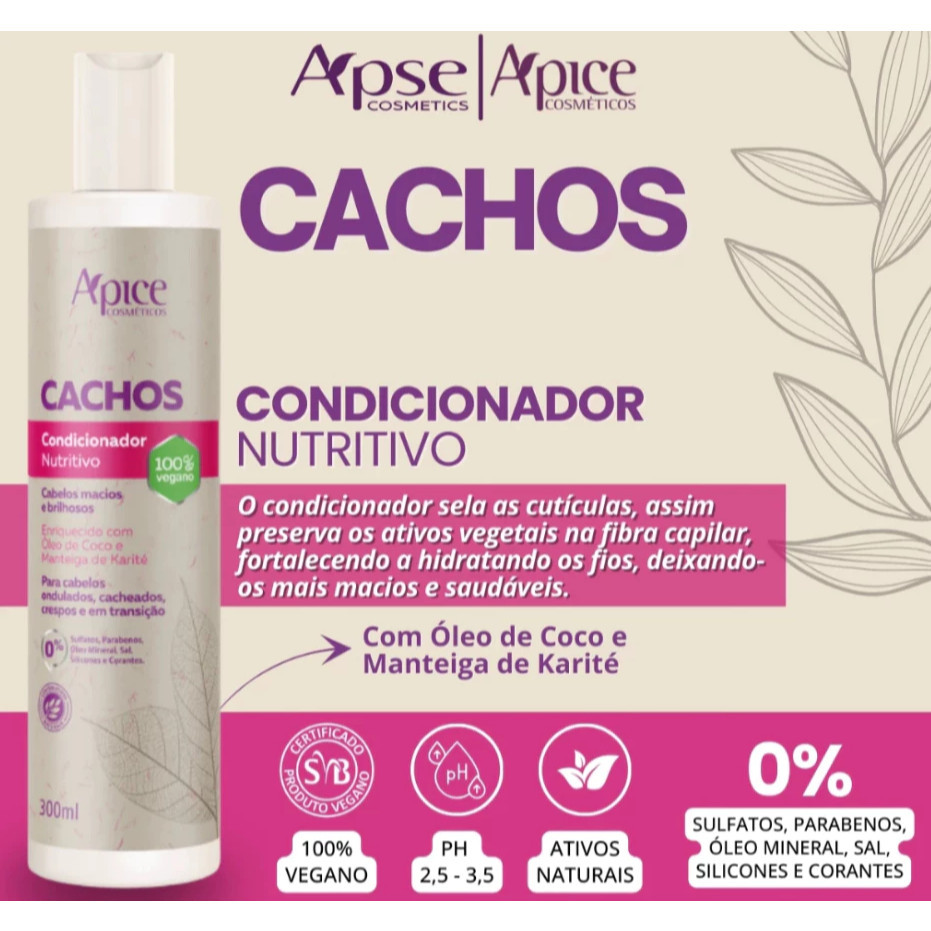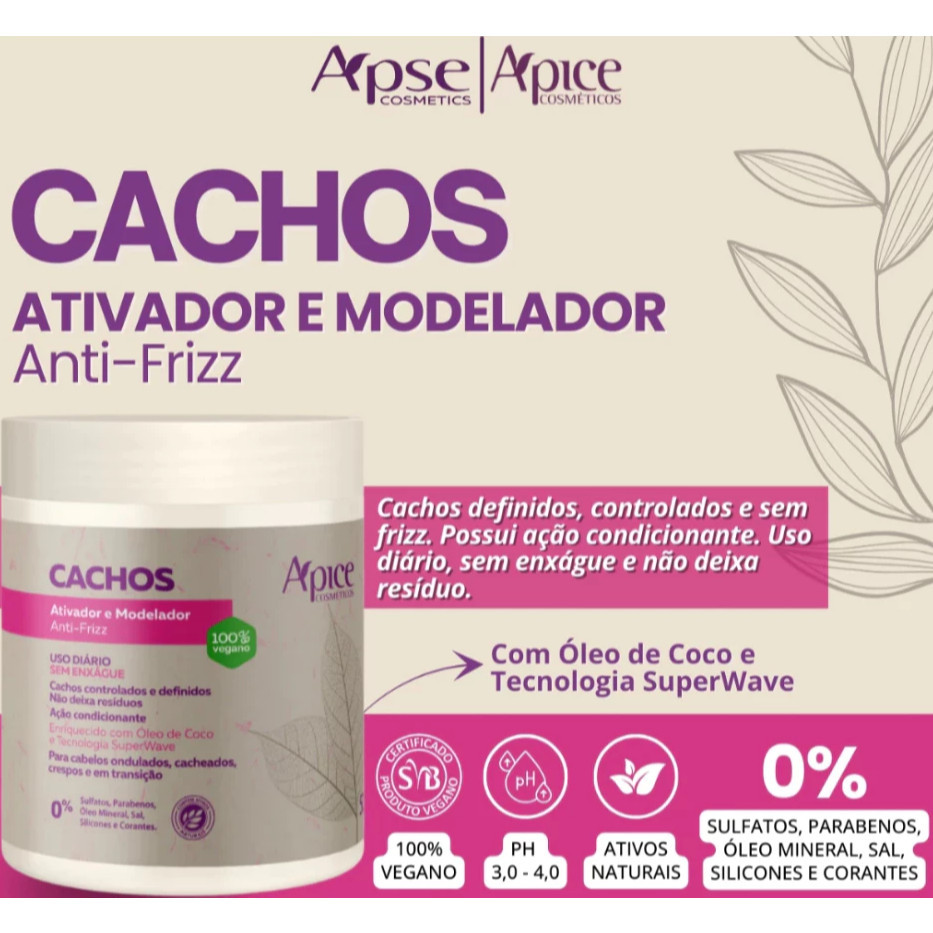 Kit Apse 3 itens Shampoo, Condicionador e Ativador Modelador Creme de Pentear CACHOS - Apice