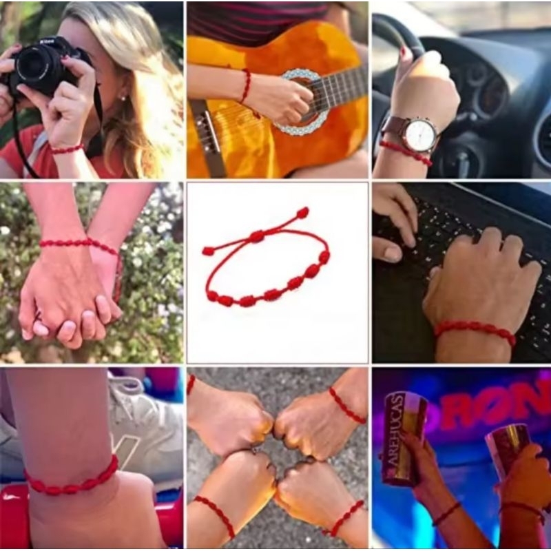 Pulseiras 7 Nós: Prosperidade e proteção Kabbalah, Pulseira vermelha original, sorte.