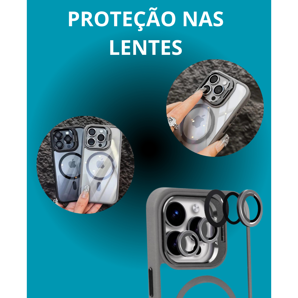 Kit Capa Magsafe + Pelicula de vidro Para iPhone 11 12 13 14 15 16 Pro Max Magsafe + Lente de Câmera