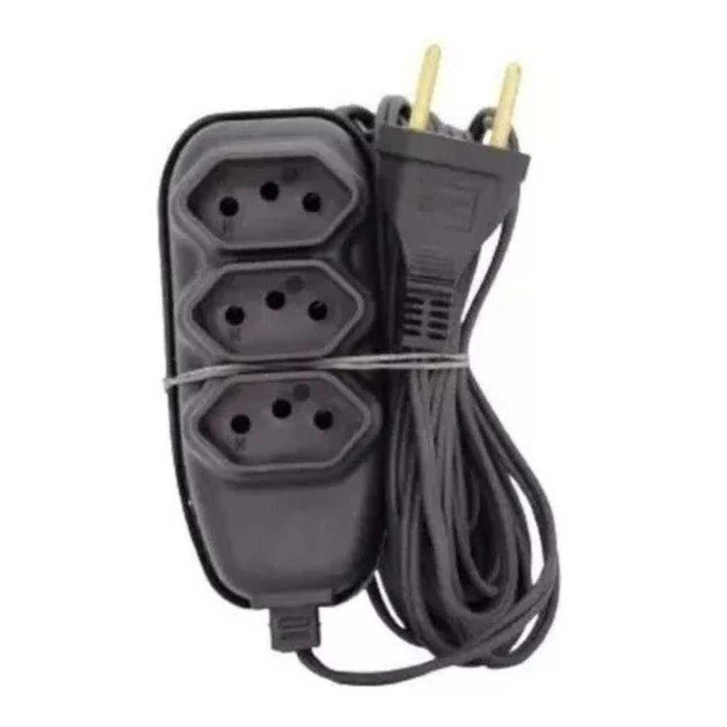EXTENSÃO 2, 3, 5 ou 10 METROS - BIVOLT 110/220V 10A TRIPOLAR RESISTENTE COR PRETA