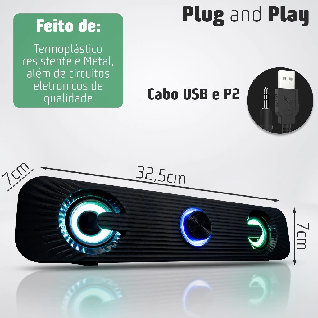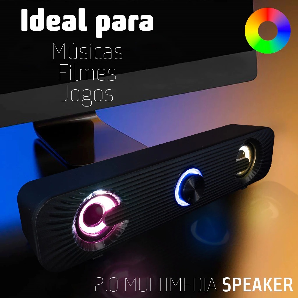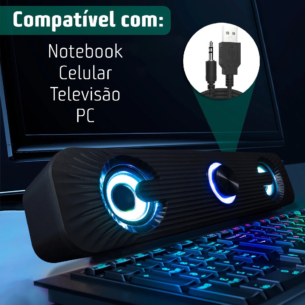 Caixa De Som Soundbar Para PC Gamer Notebook TV Computador LED RGB KP-RO829/KA-169
