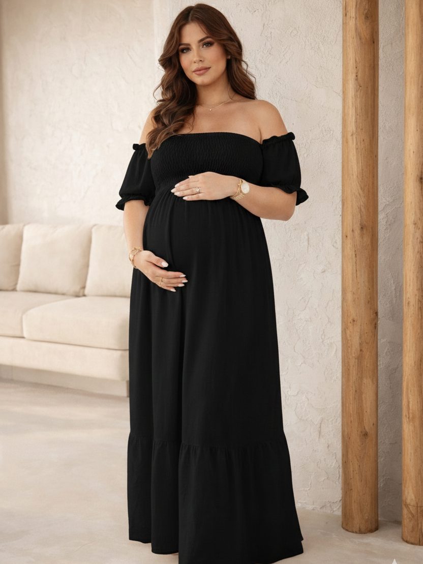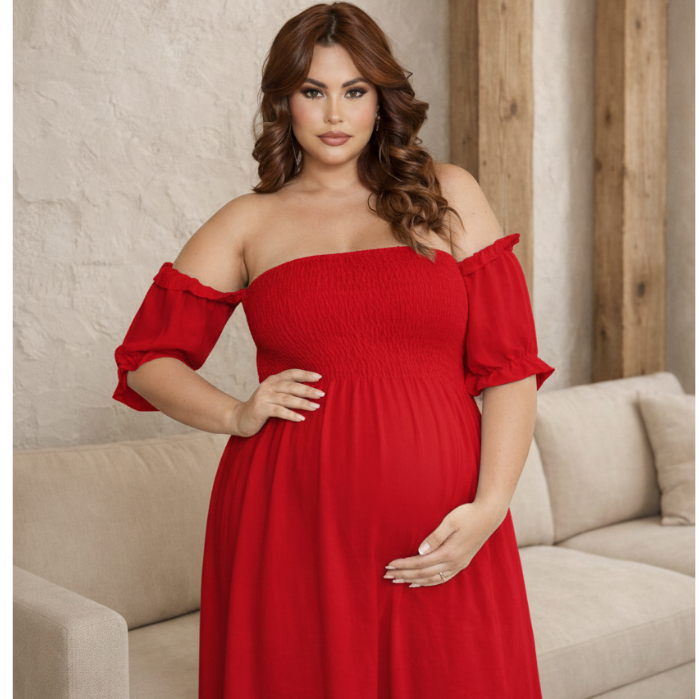 Vestido Longo Feminino Gestante Plus Size Confortável Chá Revelação Chá De Bebê Festas Eventos Casuais Estiloso Elegante