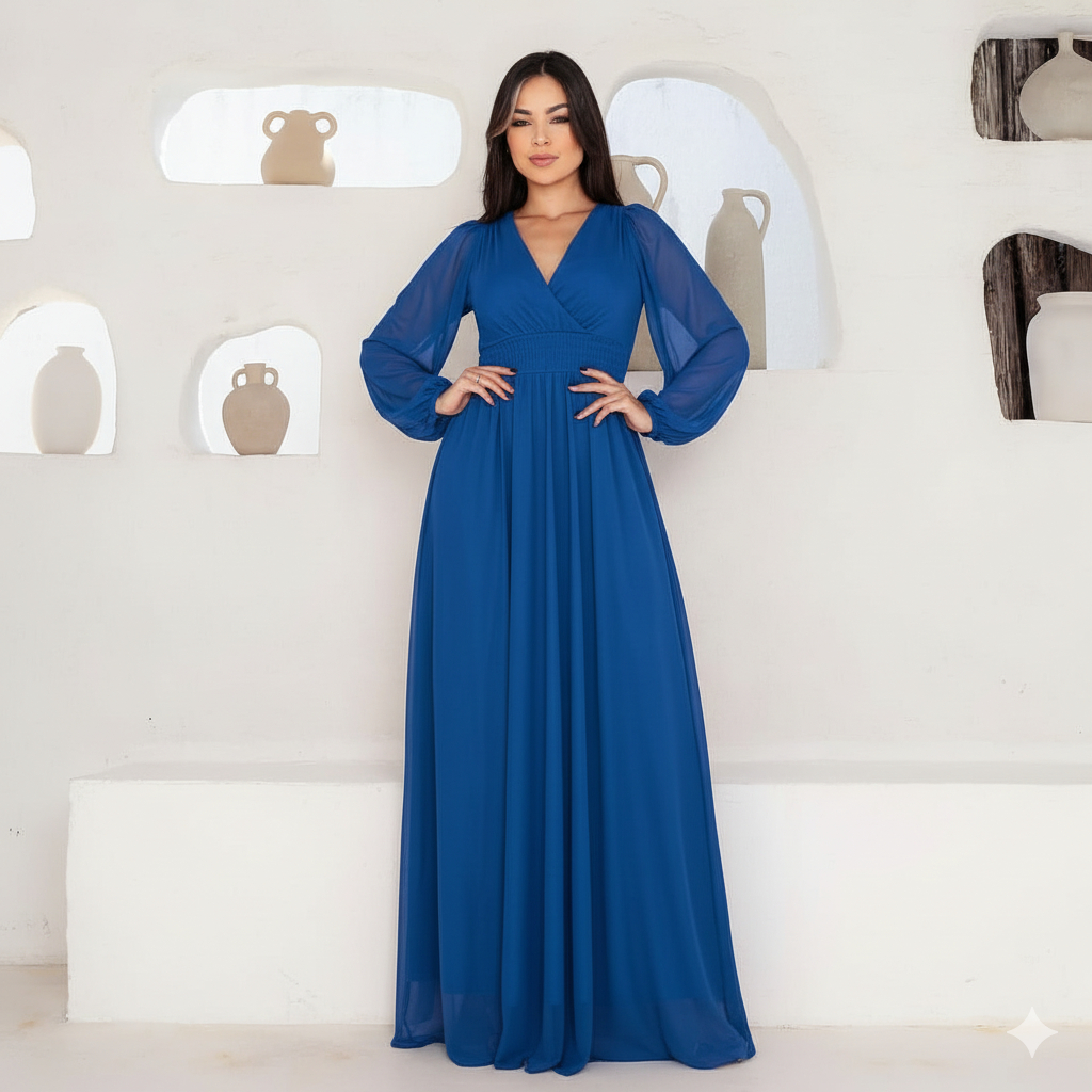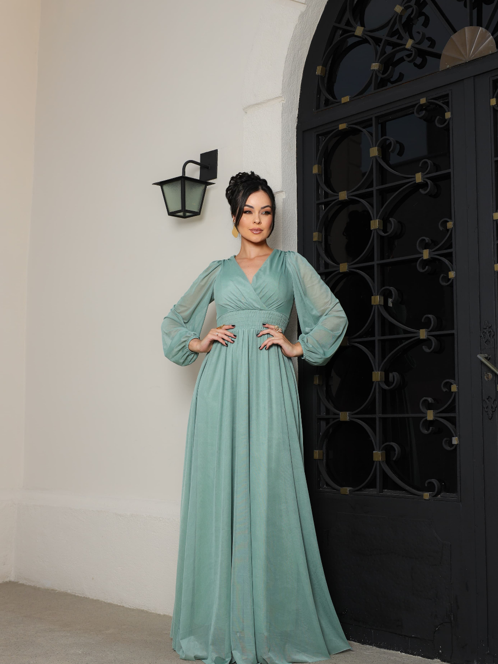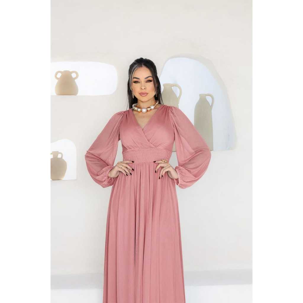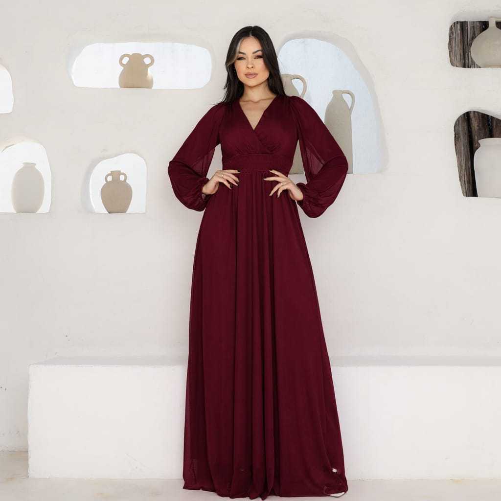 Vestido Longo Feminino para Casamento Formatura Madrinha Manga Longa ideal para evangelico e festa