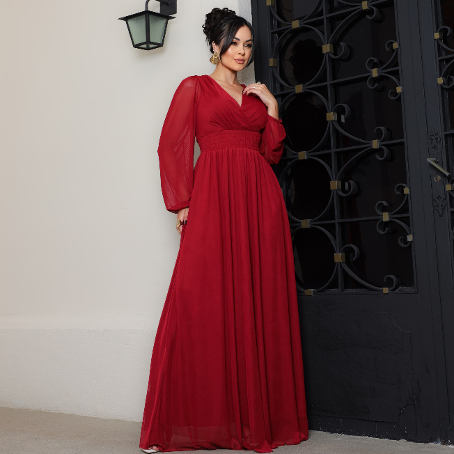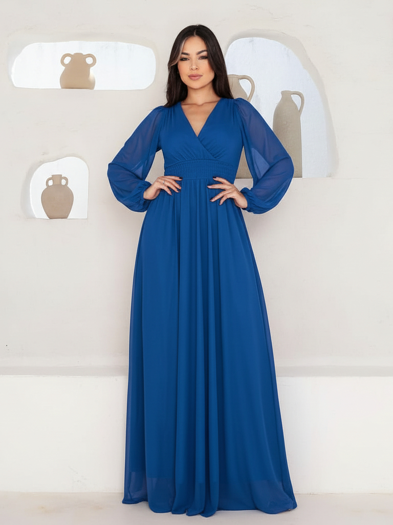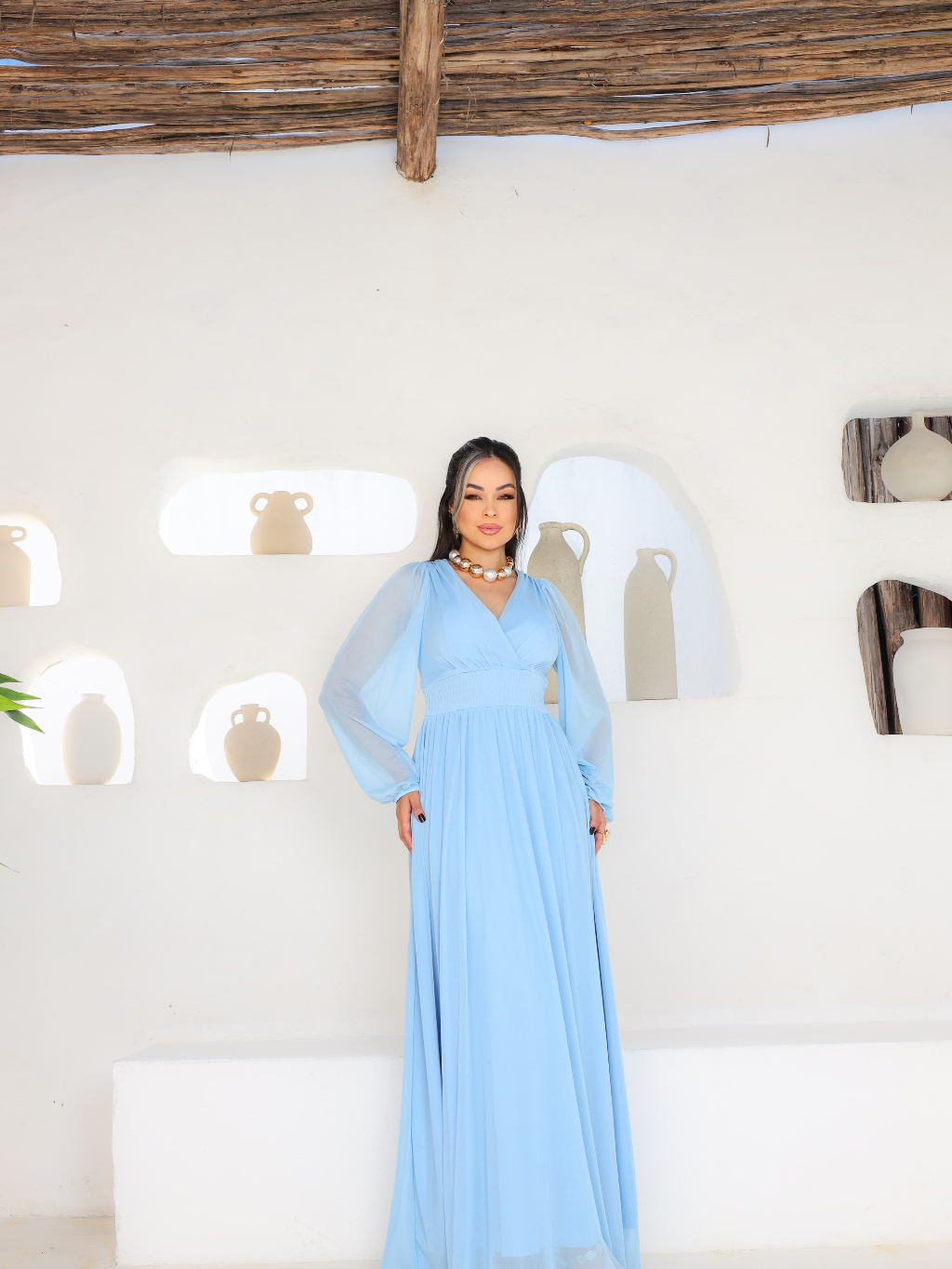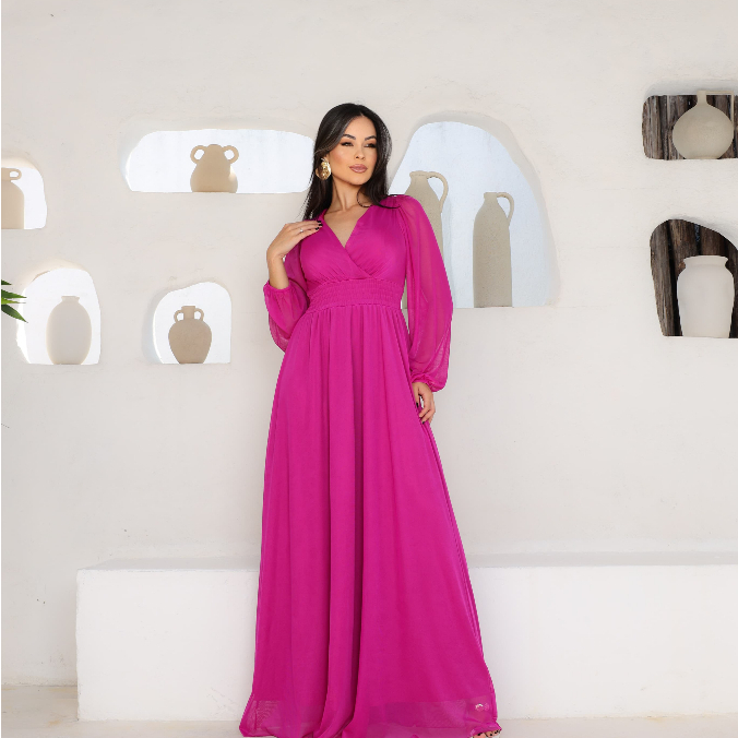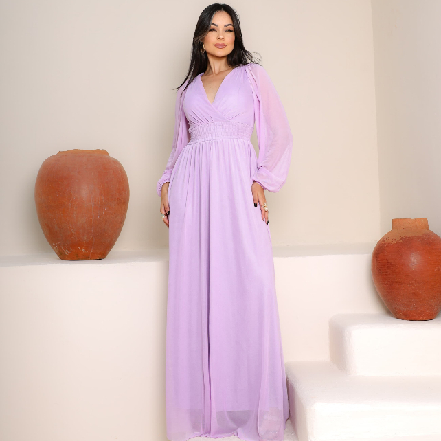 Vestido Longo Feminino para Casamento Formatura Madrinha Manga Longa ideal para evangelico e festa