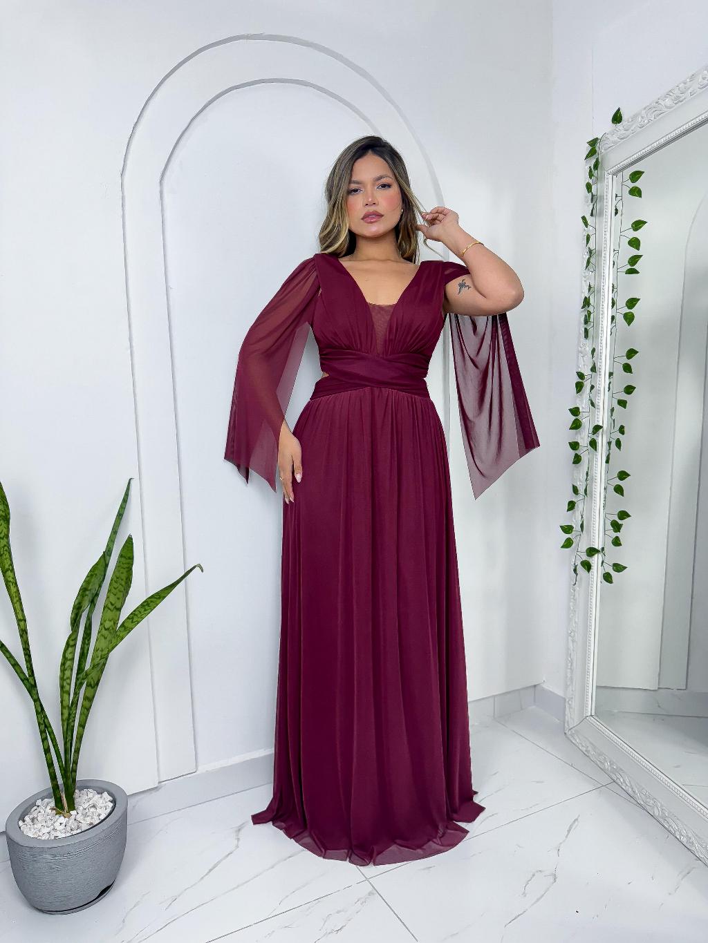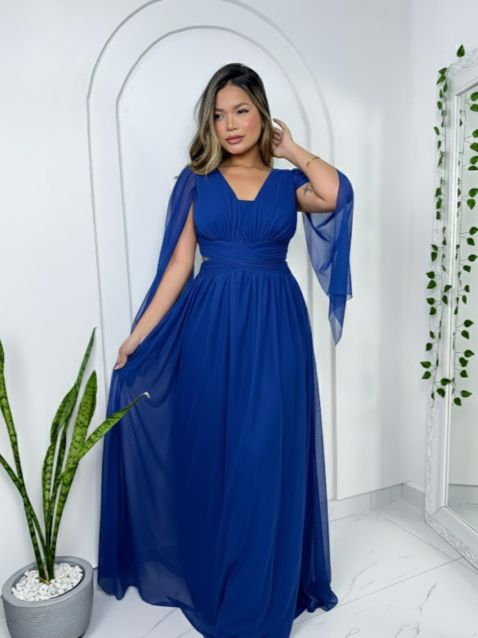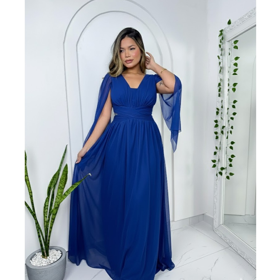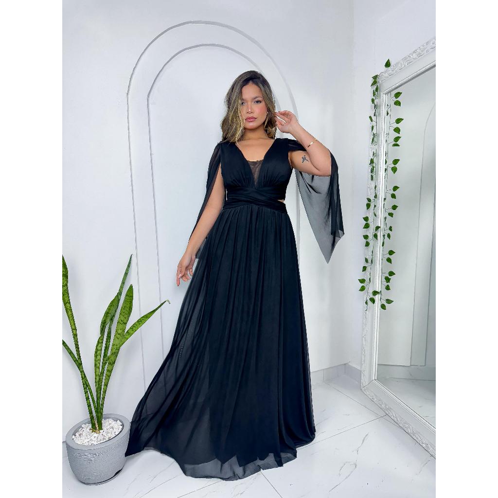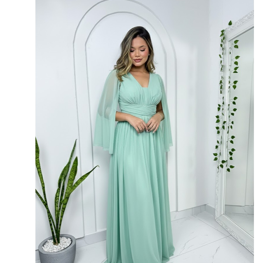 vestido longo feminino Elegante com capa ideal para Festa Luxo Madrinha Formatura Decote Profundo