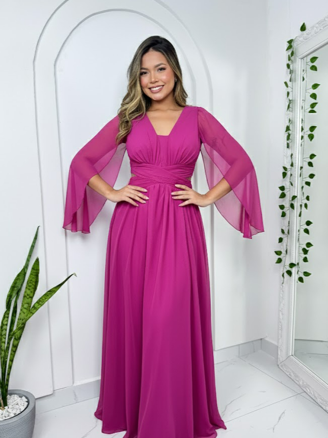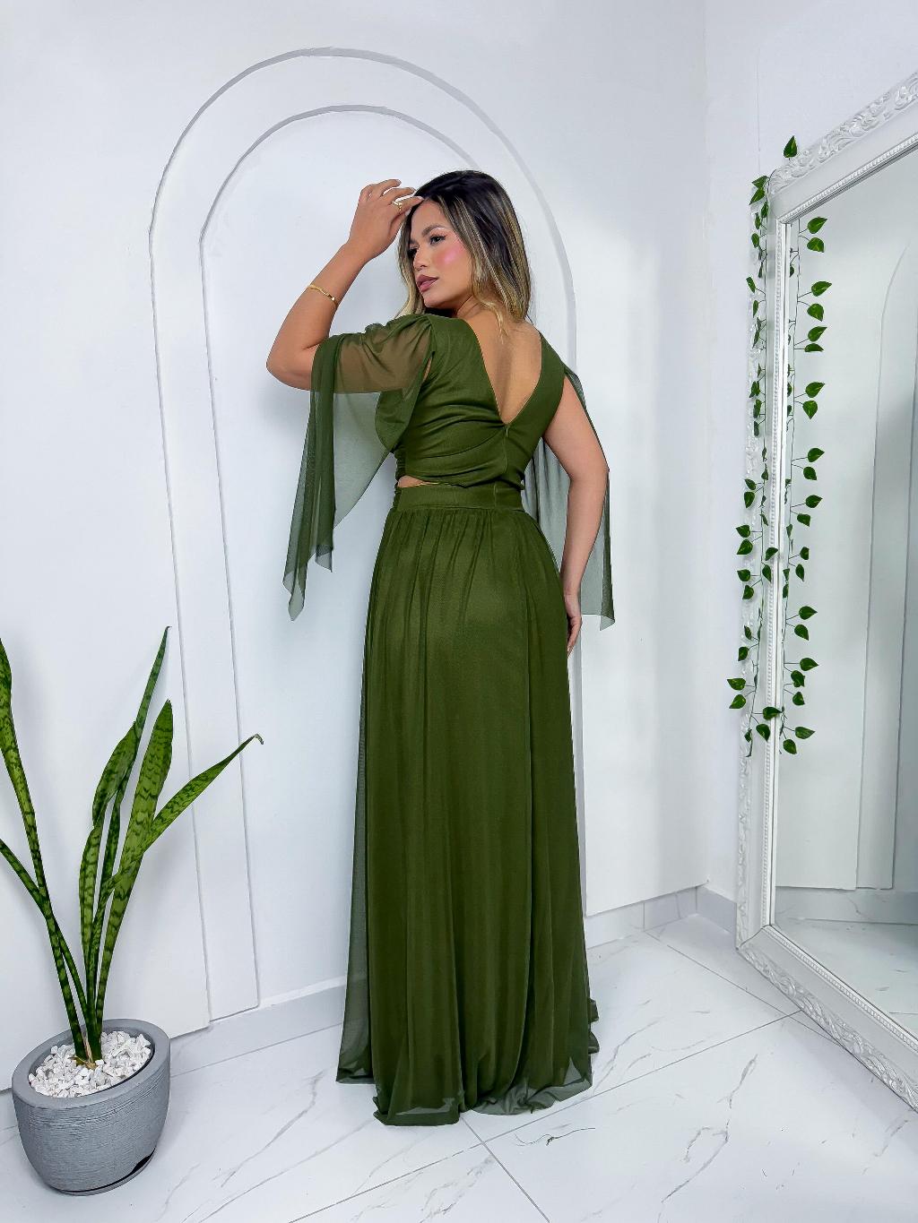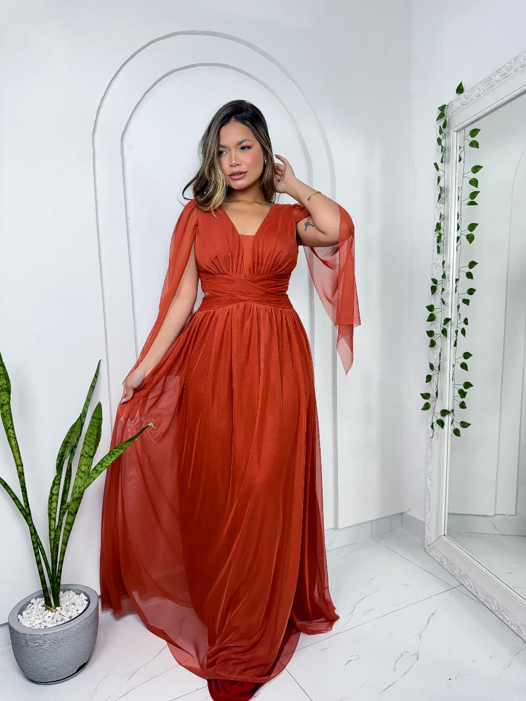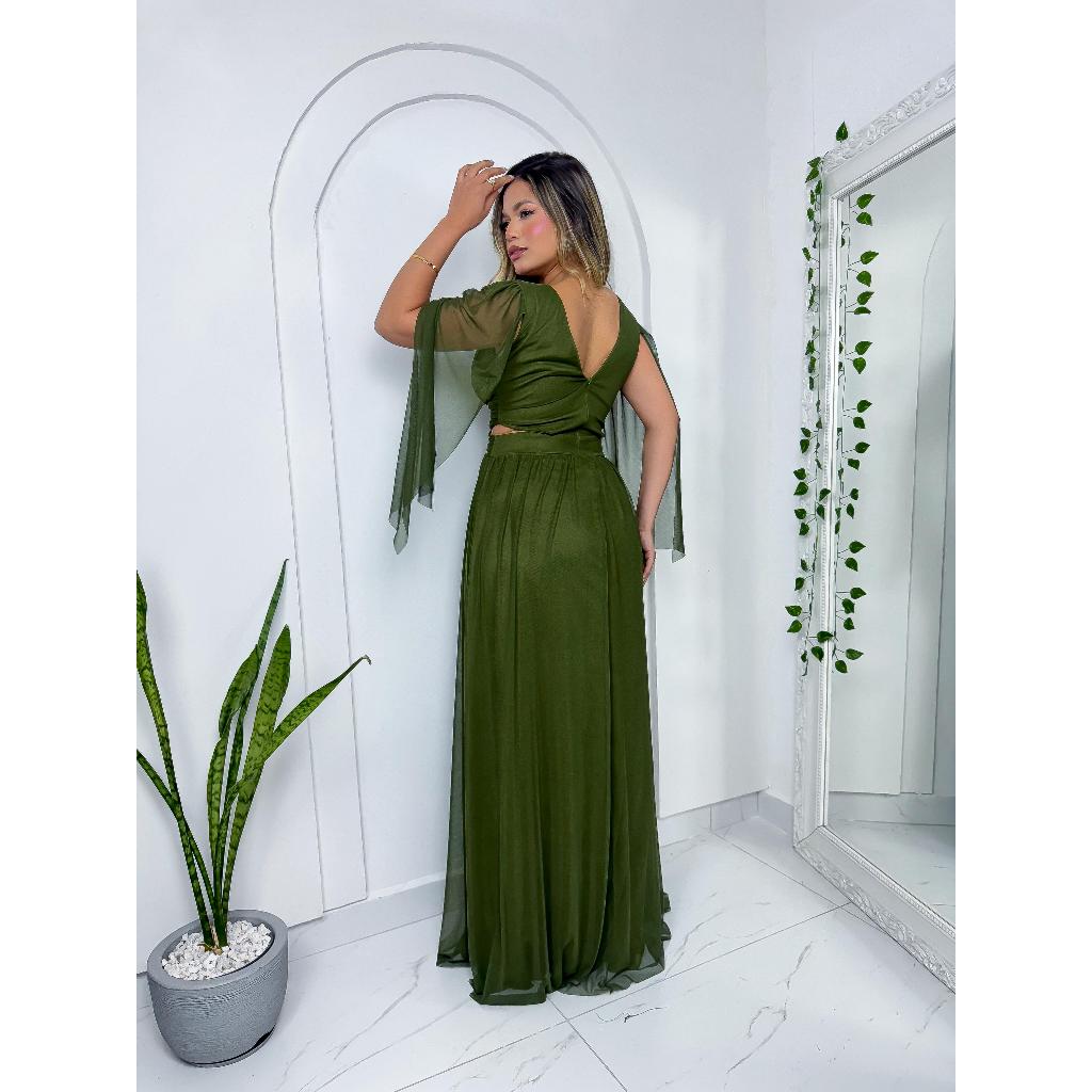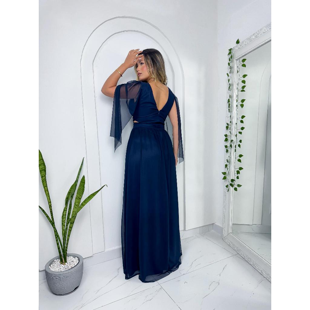 vestido longo feminino Elegante com capa ideal para Festa Luxo Madrinha Formatura Decote Profundo