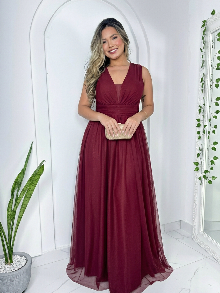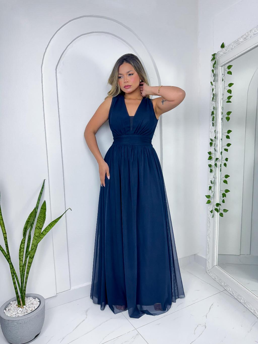 Vestido feminino longo de Festa Sem Manga Elegante Madrinha Casamento convidada luxo