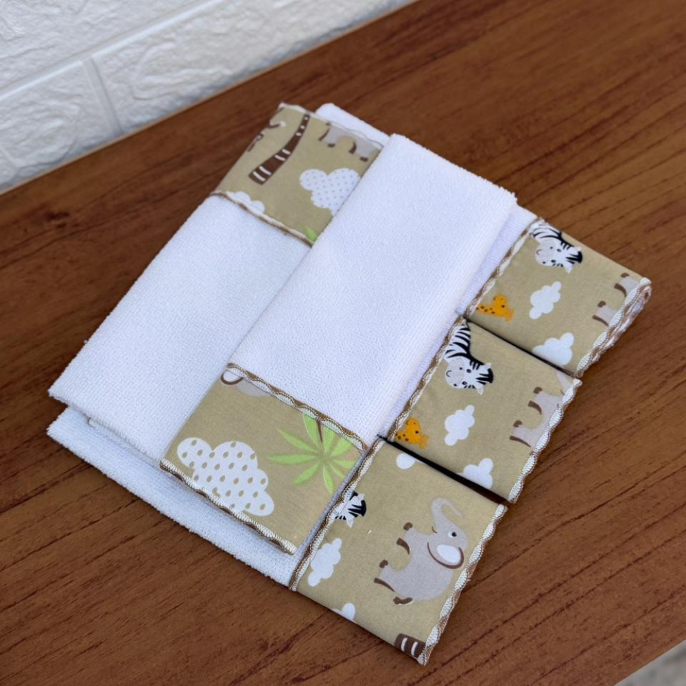 Toalha de Banho com Capuz Forrado com Orelhinhas + 5 Toalhinhas de Ombro Higiênico Atoalhado Safari