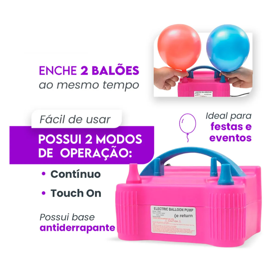 Bomba Inflável Elétrica de Balões 2 Bicos 110V/220V - Ideal para Decoração de Eventos e Festas