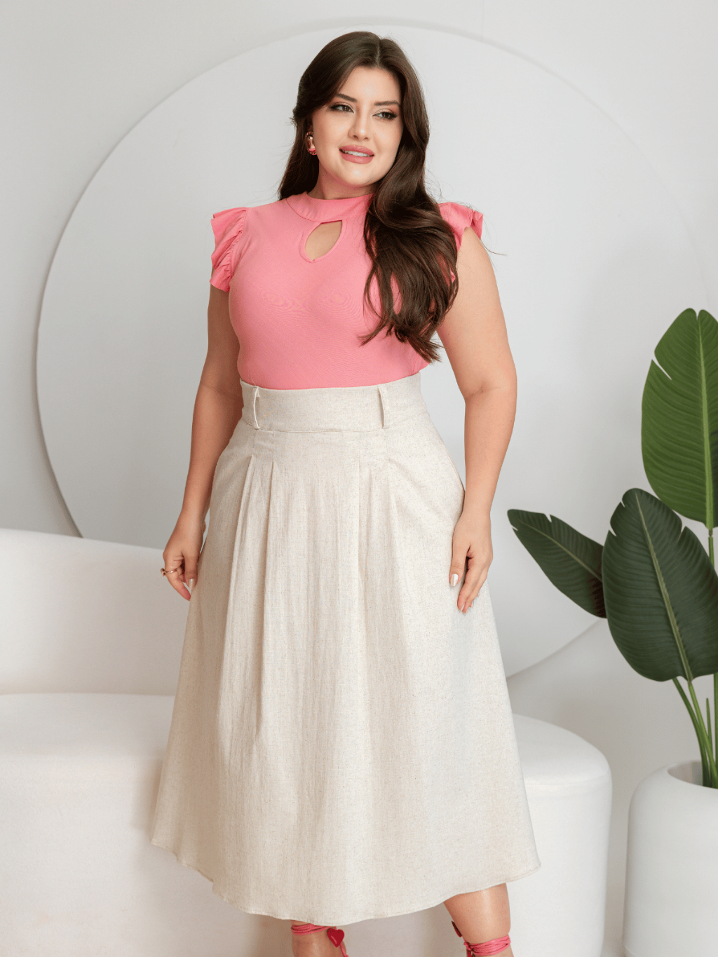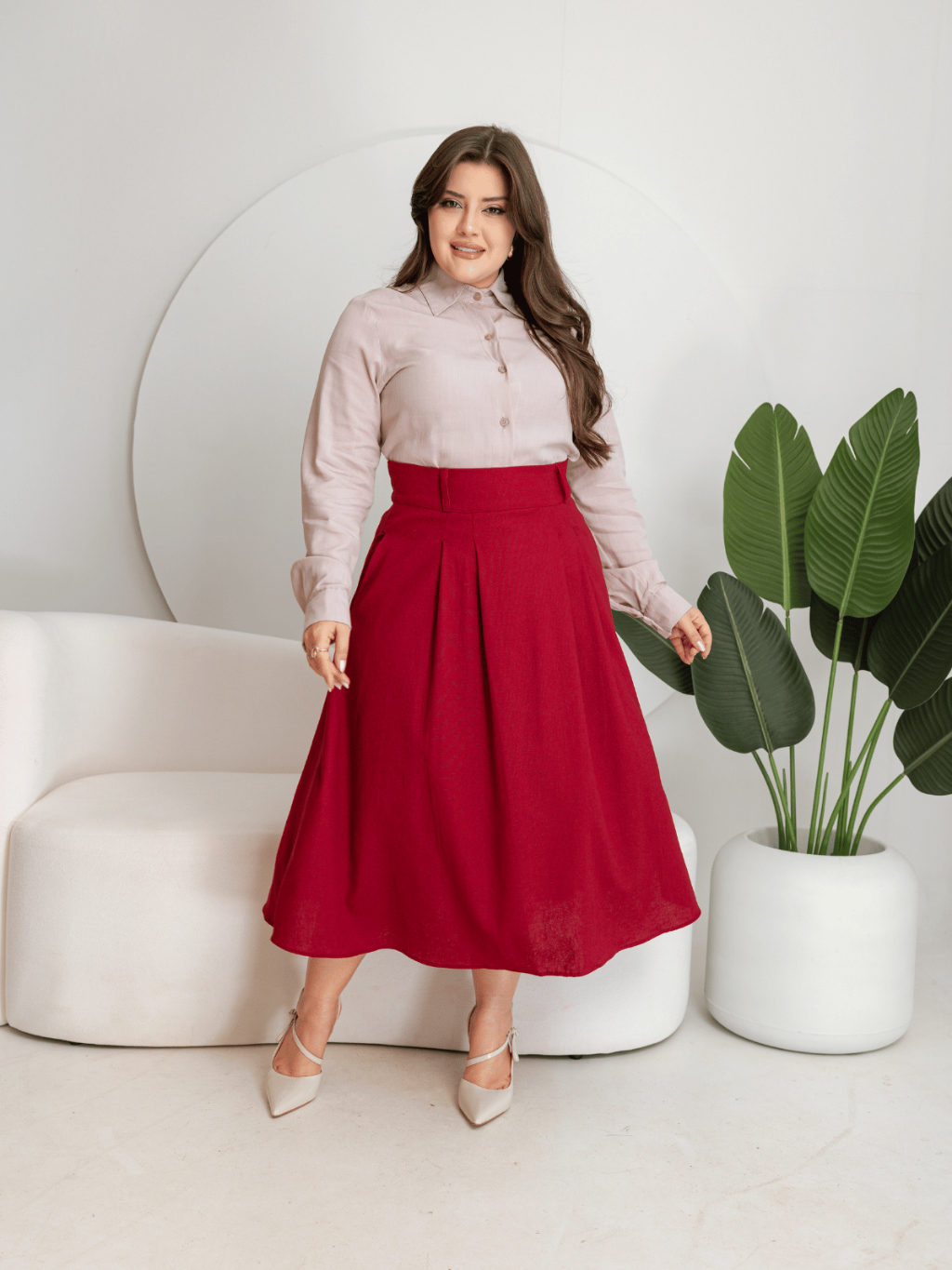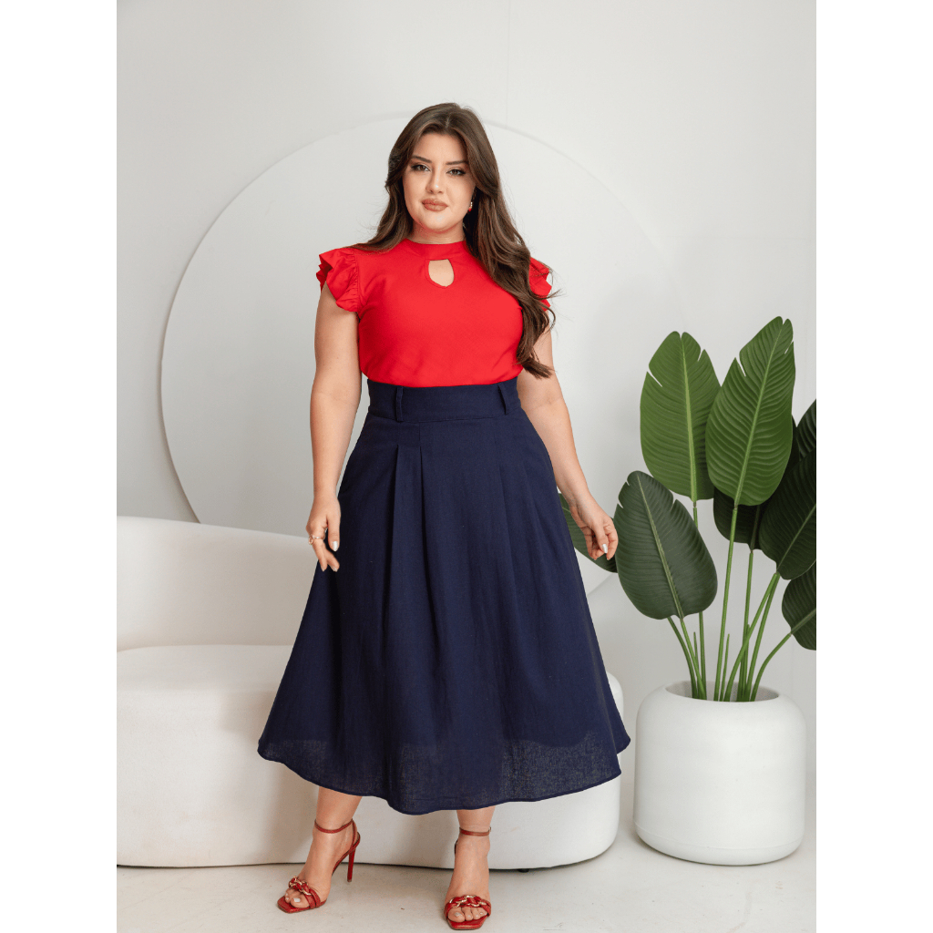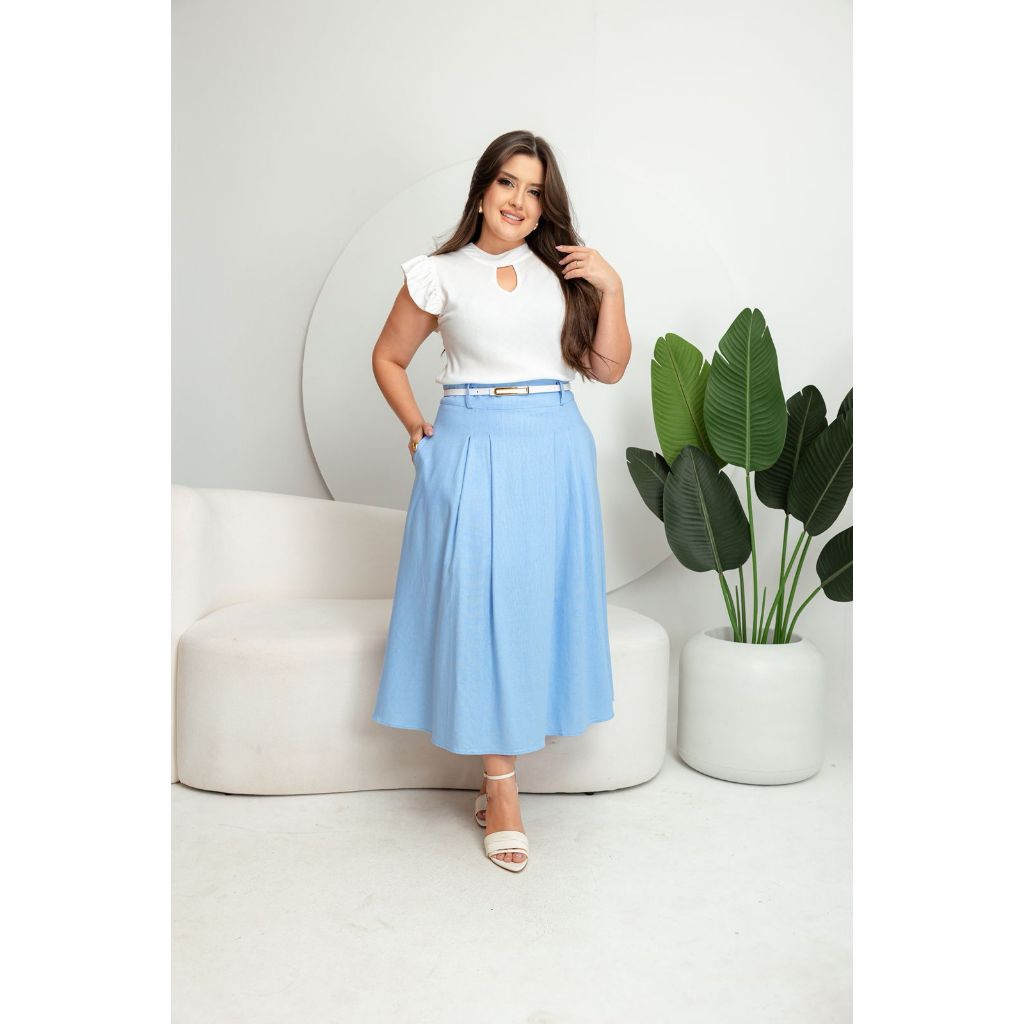 Saia Feminina Midi Raquel – Linho Confortável e Elegante Sofisticada