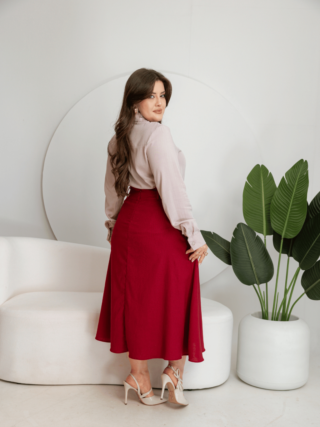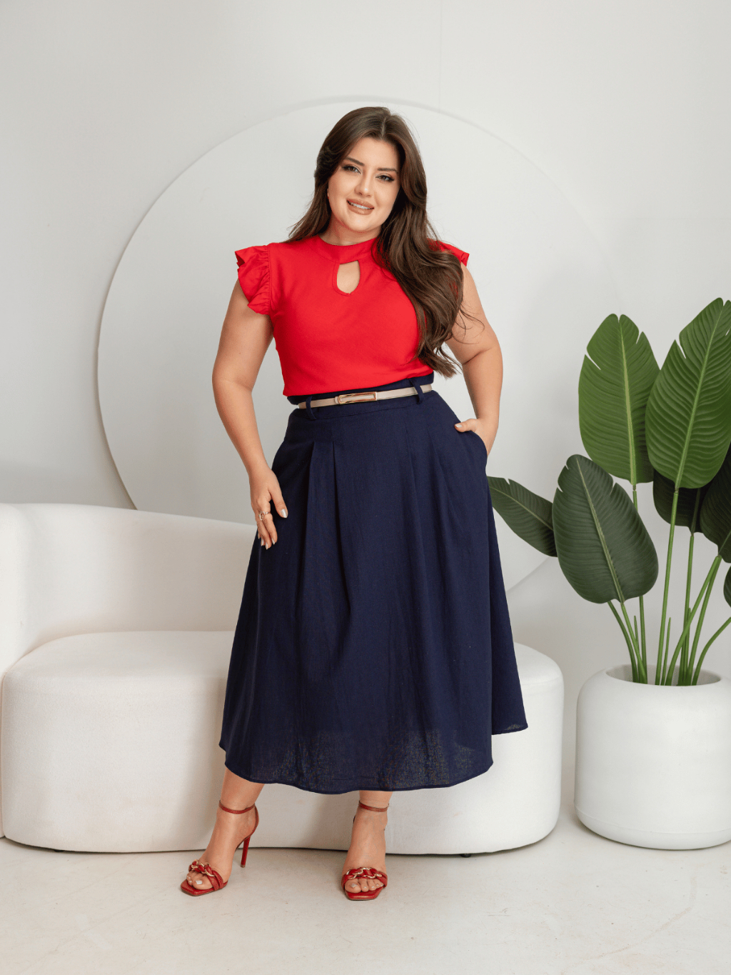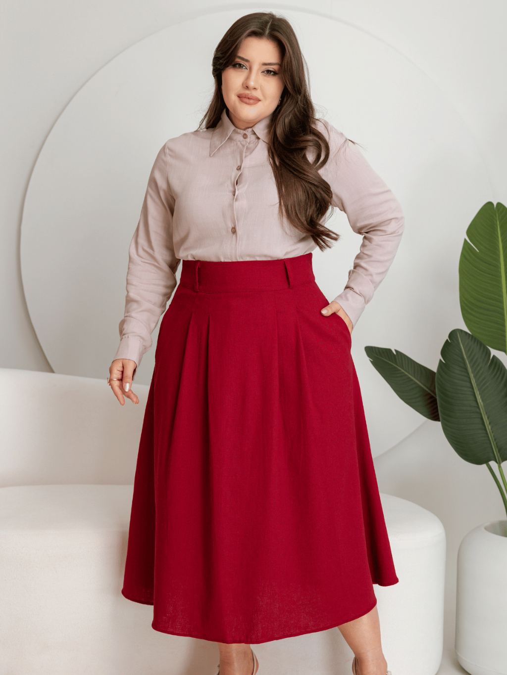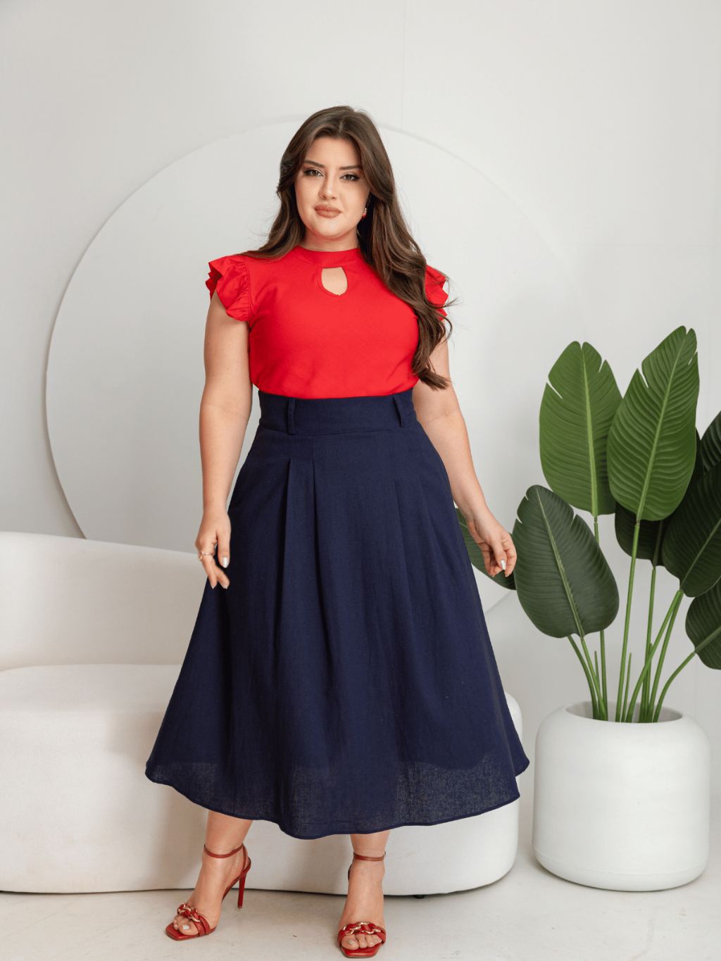 Saia Feminina Midi Raquel – Linho Confortável e Elegante Sofisticada