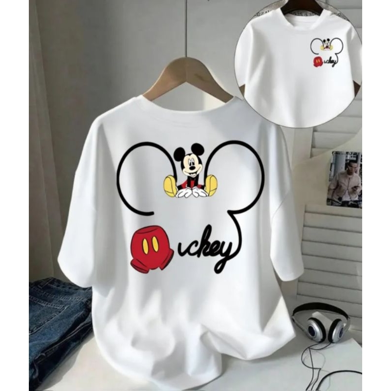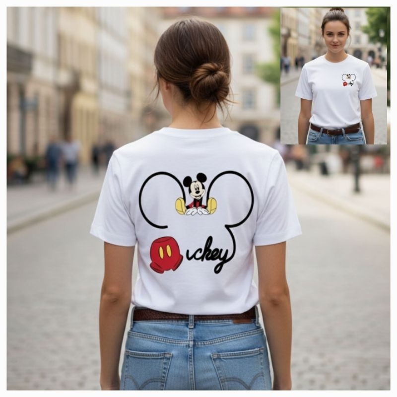Blusa Feminina de Manga Curta com Estampa do Mickey Mouse com Design de Orelhas Icônicas Camiseta Casual Confortável