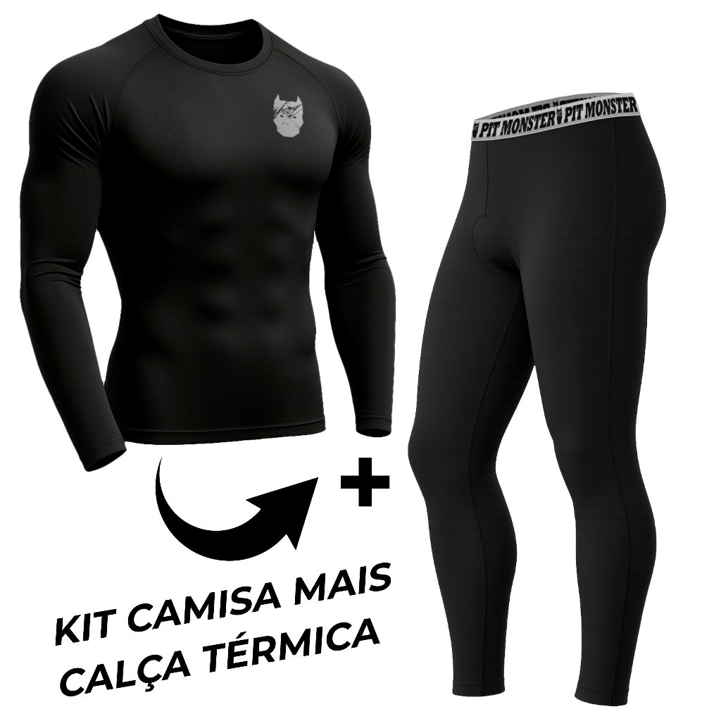 Kit 2 peças camiseta térmica de manga longa e calça respiráveis para treino de fitness na academia.