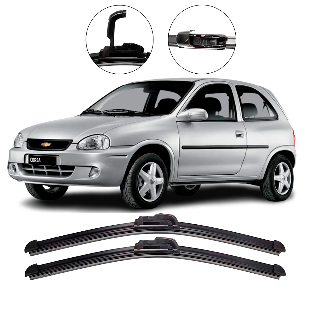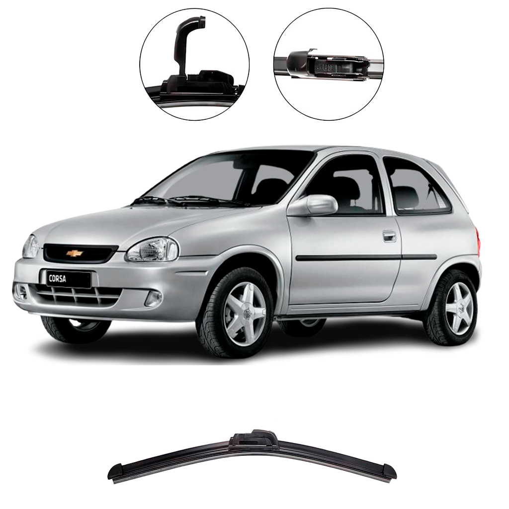 Kit de Palhetas Limpador de Parabrisa Dianteiro + Traseiro Chevrolet Corsa Hatch 1994 até 2001