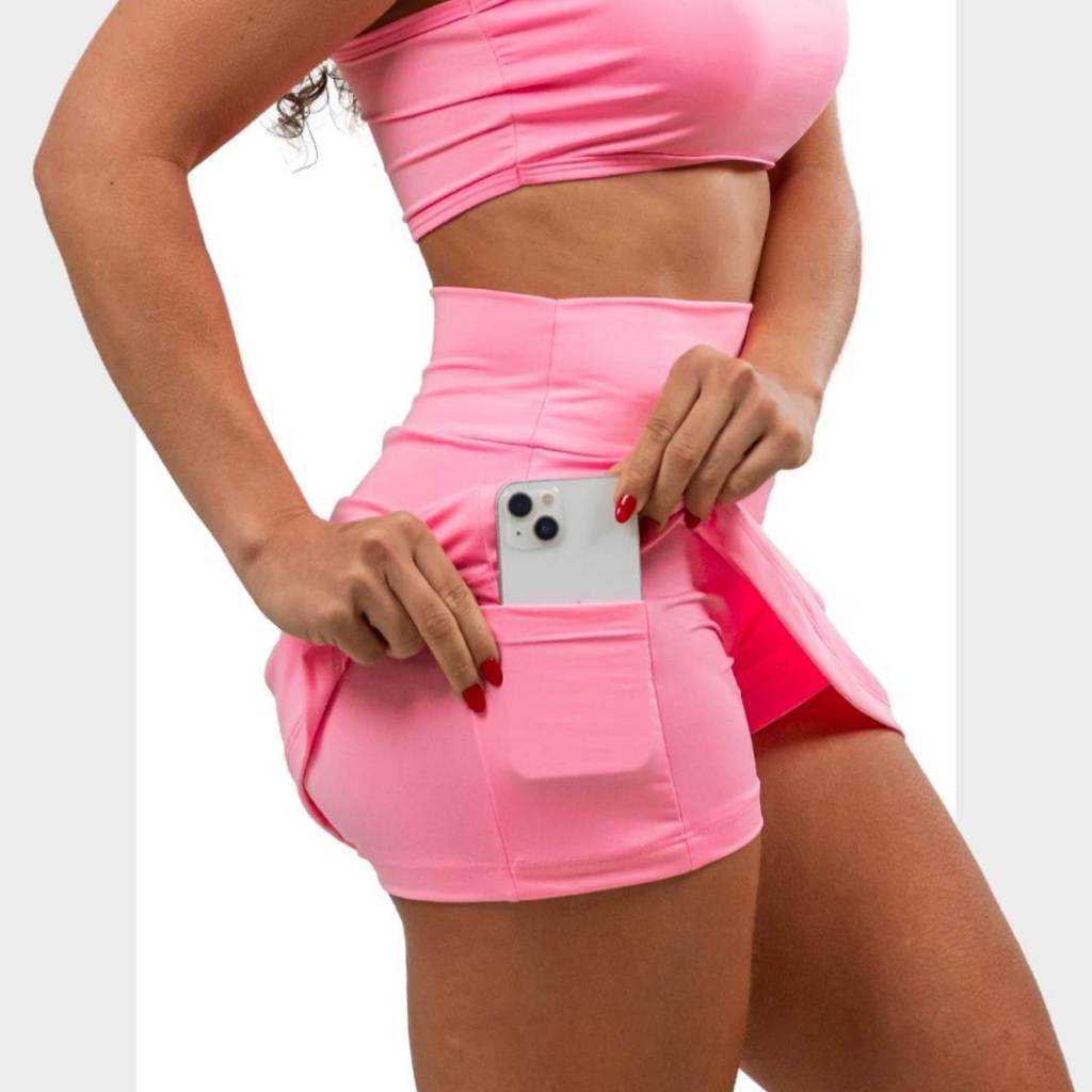 Short Saia Academia Com 2 Bolso Oculto pra Celular/bolinha Sport Tapa Bumbum Fitness c/ ProteçãoUV