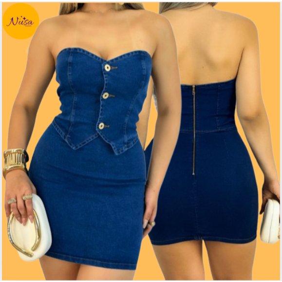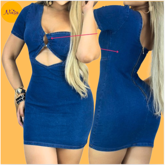 Vestidos Jeans com Lycra Curto Moda Verão Passeio Festa Casual Lavagens Escura e Clara, Nusa Modas