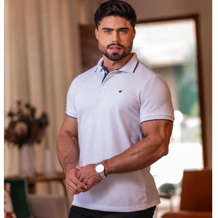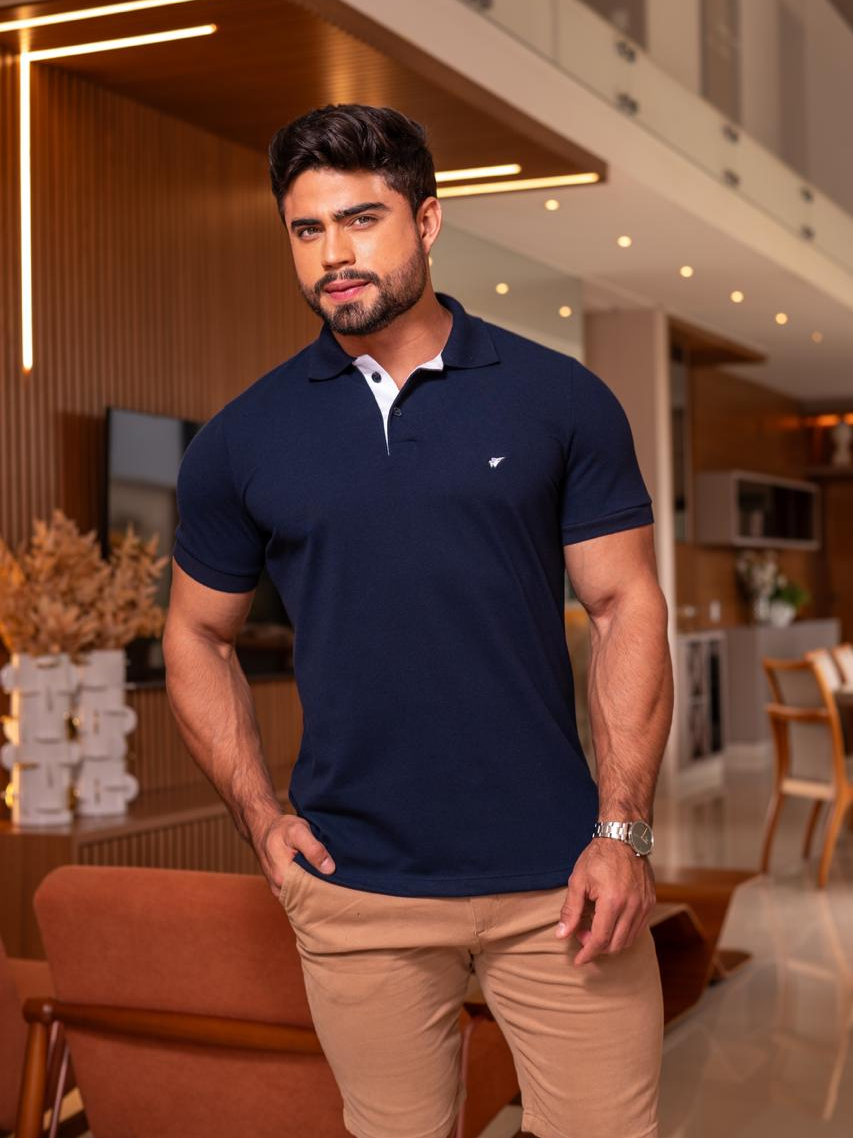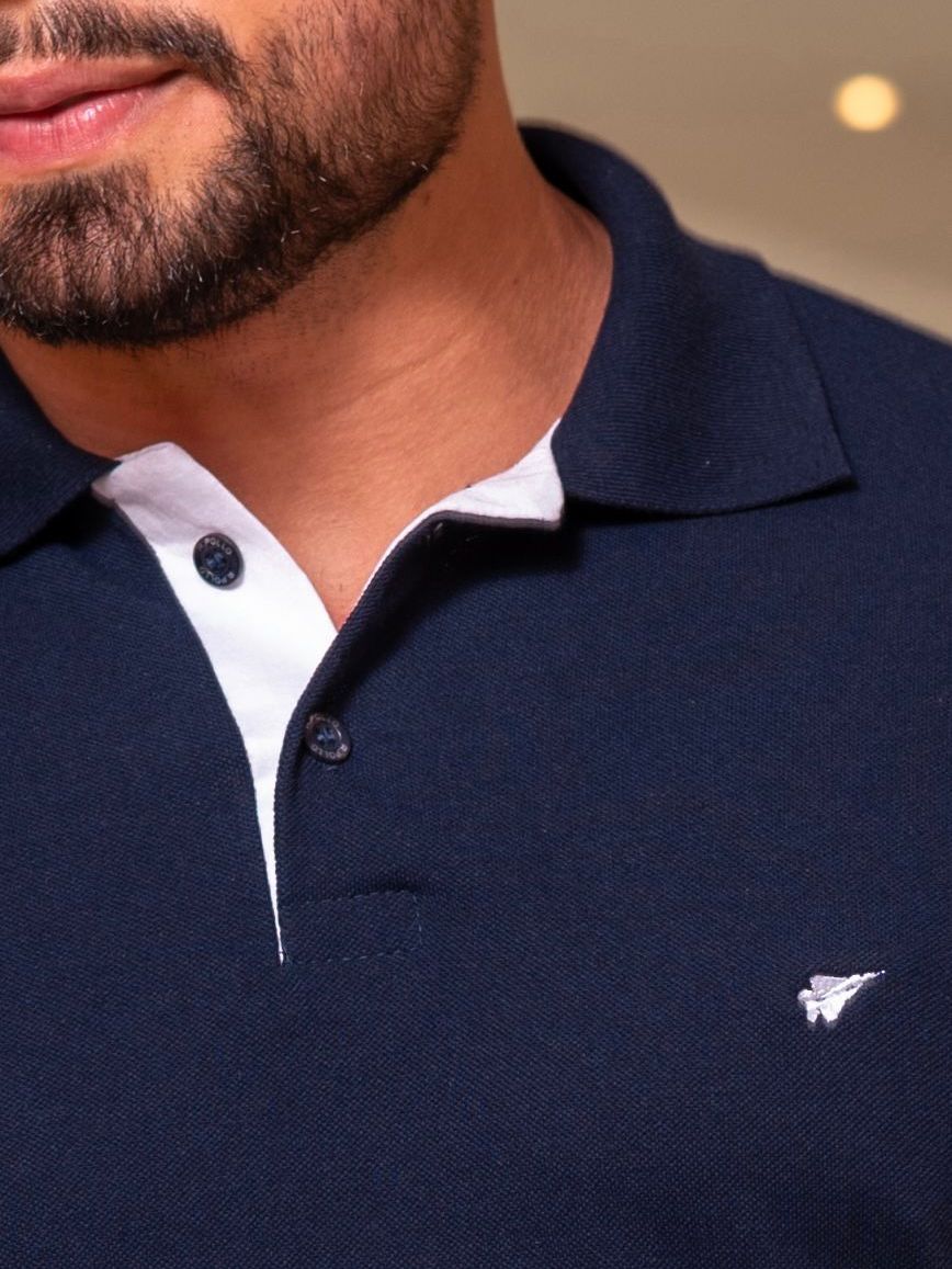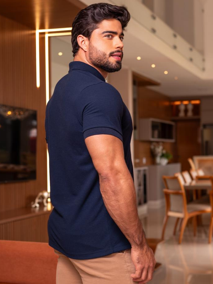 Camisa Polo Masculina Premium Slim Fit Algodão Piquet Casual Elegante Azul Marinho