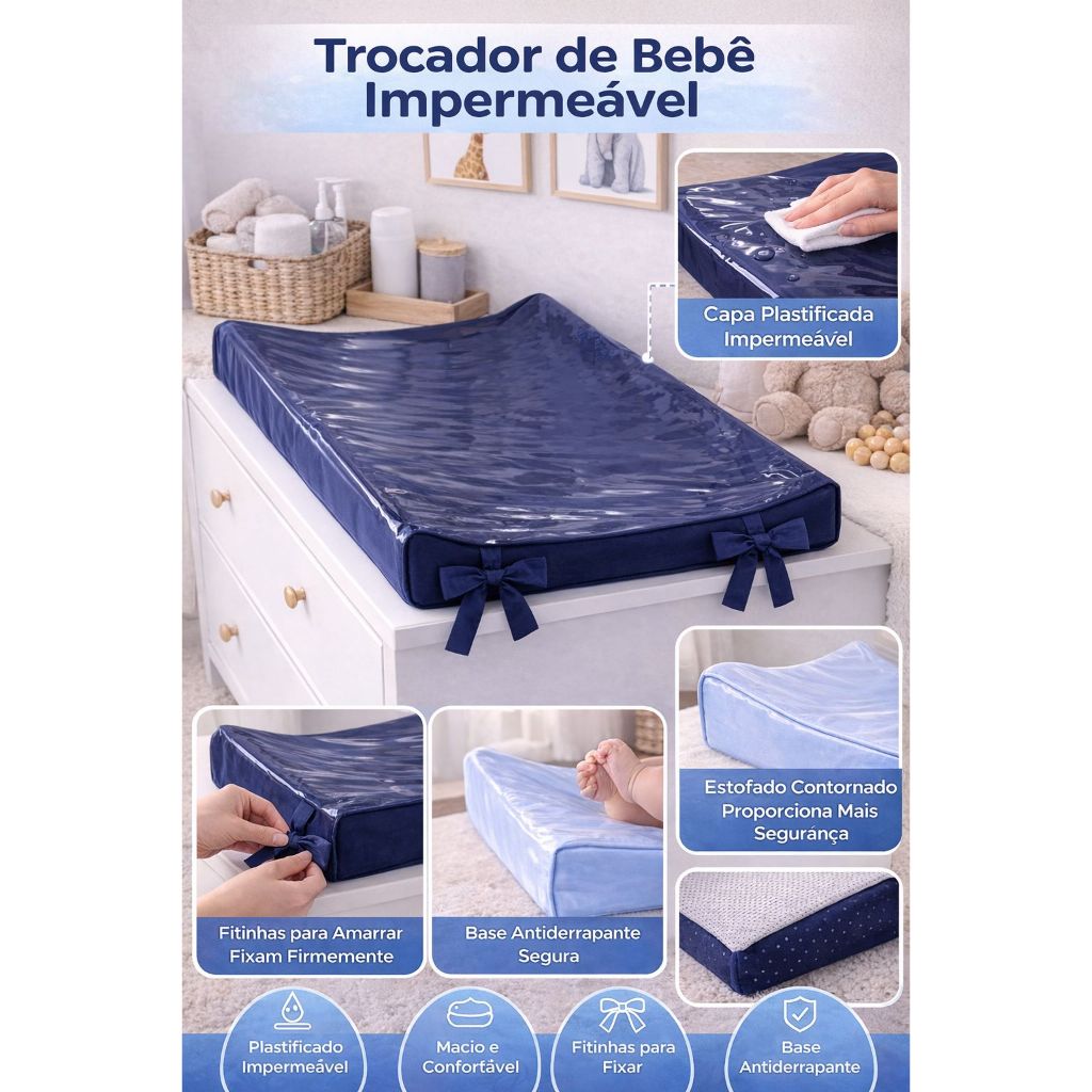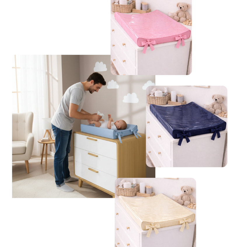 Trocador De Cômoda Para Bebe Americano Anatômico 55X40cm Impermeável Menina Menino Cores lisa