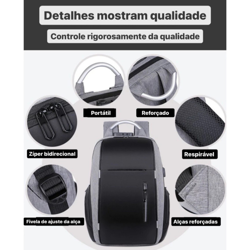 Mochila Reforçada Masculina Faculdade Impermeável Resistente Grande Trabalho Segurança Escolar