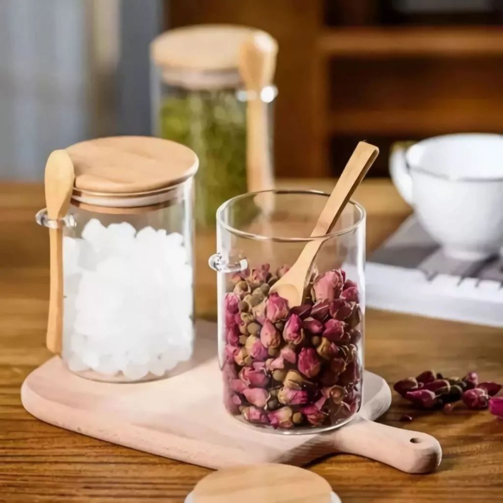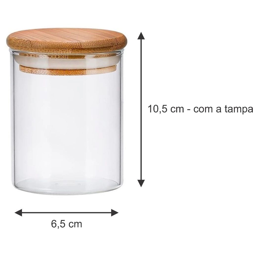 6 Potes de Vidro Hermético com Tampa de Bambu 250ml para Temperos e Alimentos