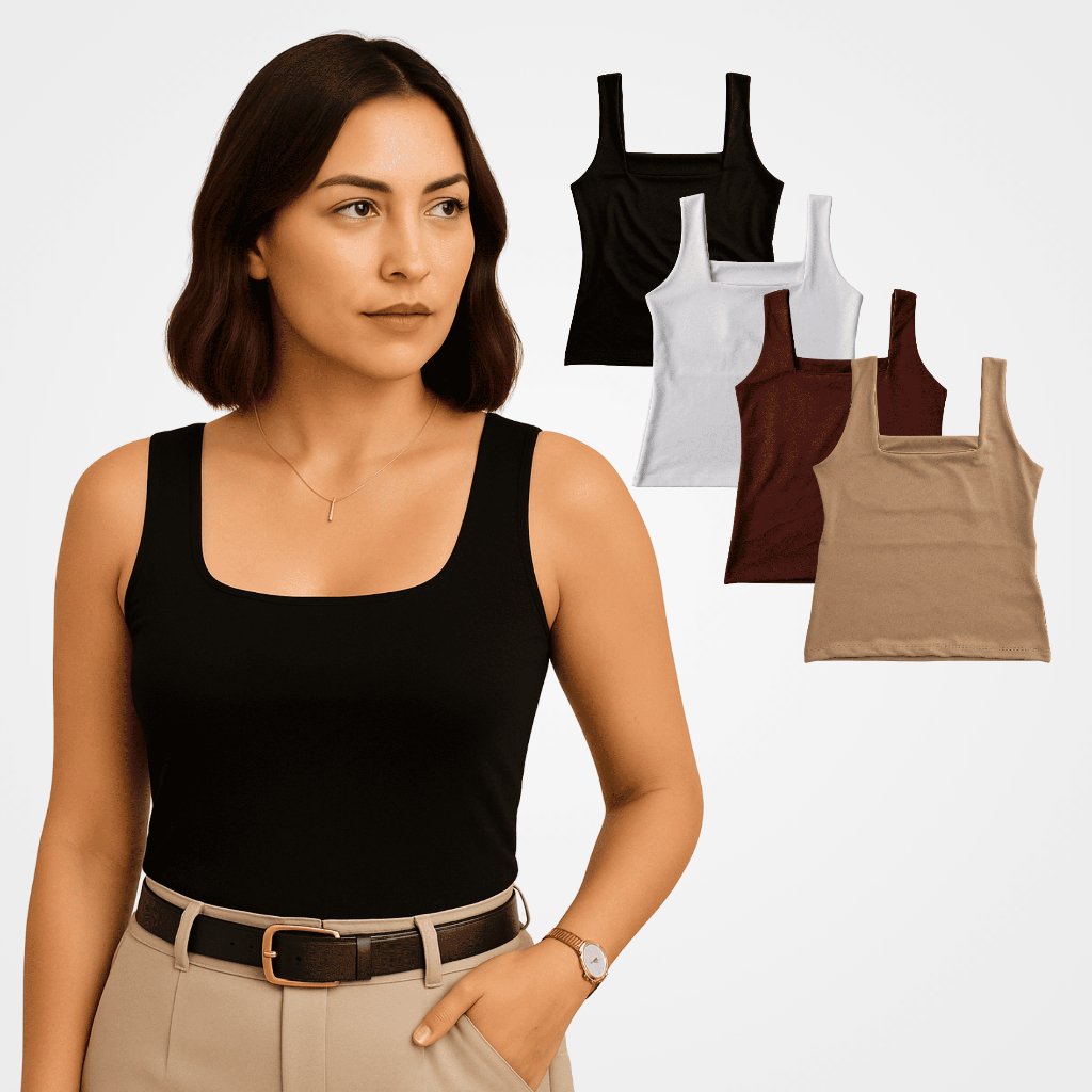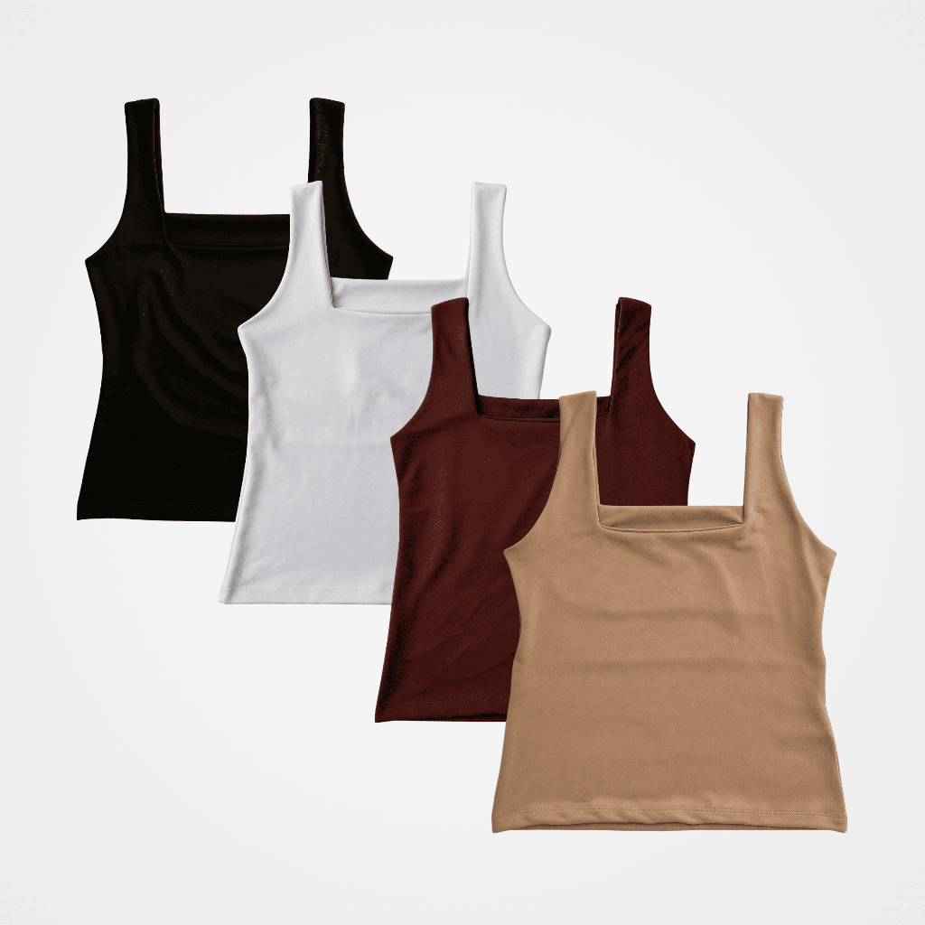 Regata Feminina 4 em 1 dia a dia , festa , academia , formal Decote Quadrado Elegante Suplex Toque Fresco