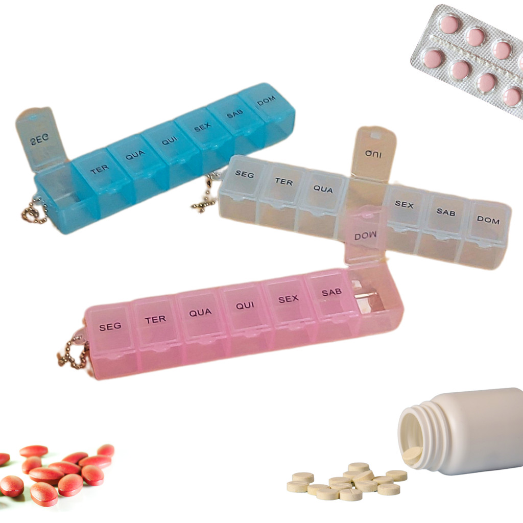 Kit com 2 ou 3 Porta Comprimido Semanal Organizador De Remédios 7 dias Cada