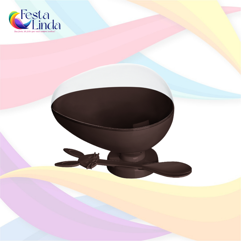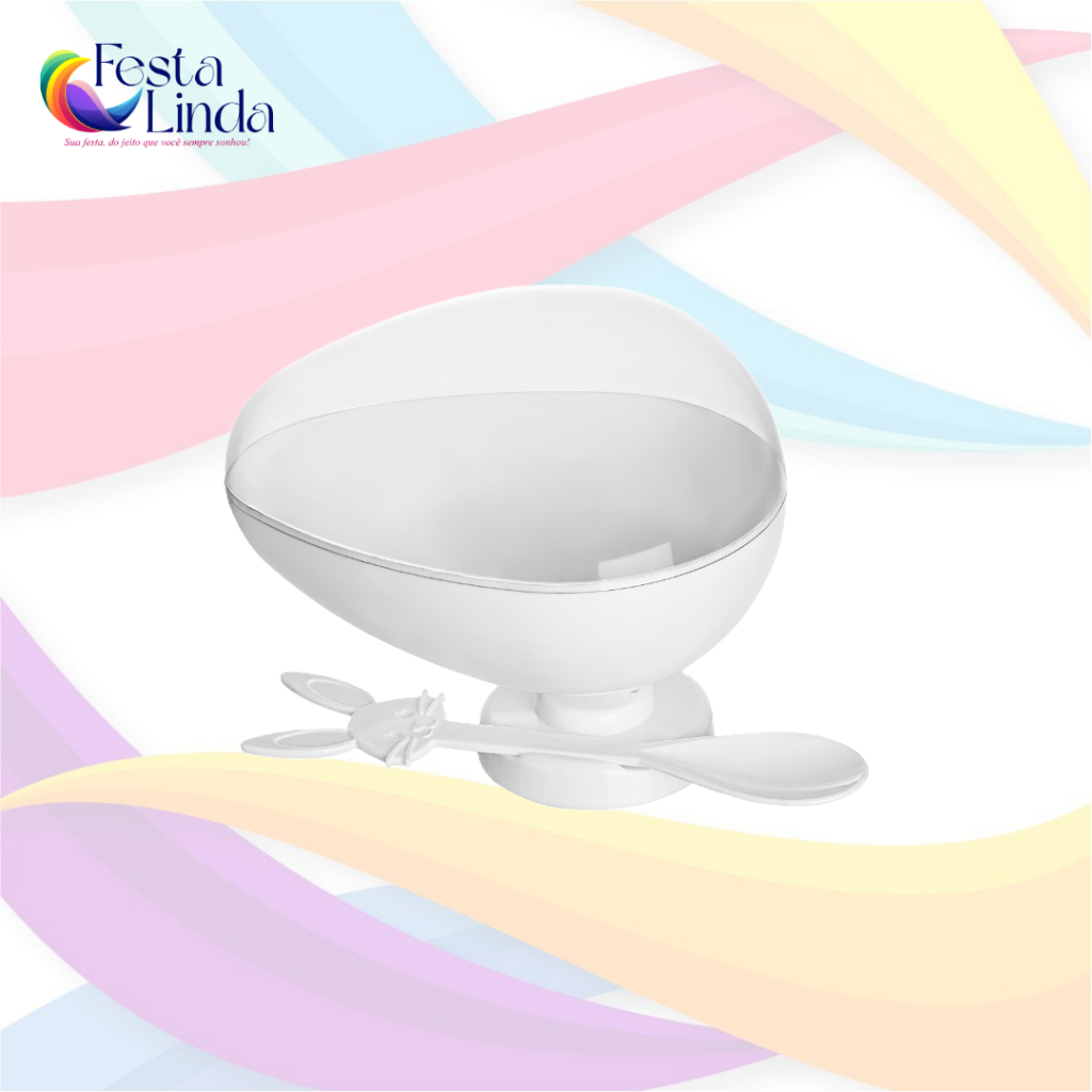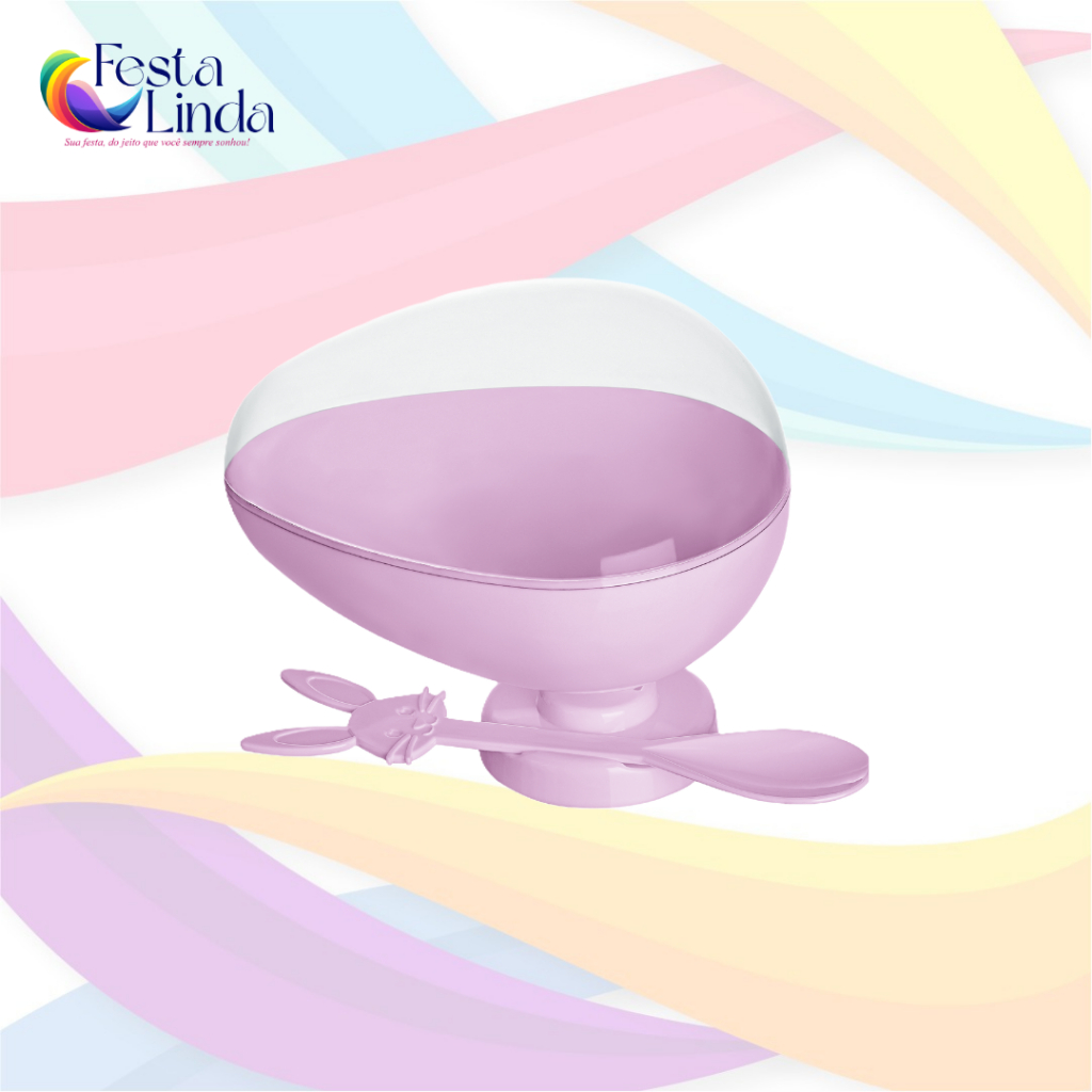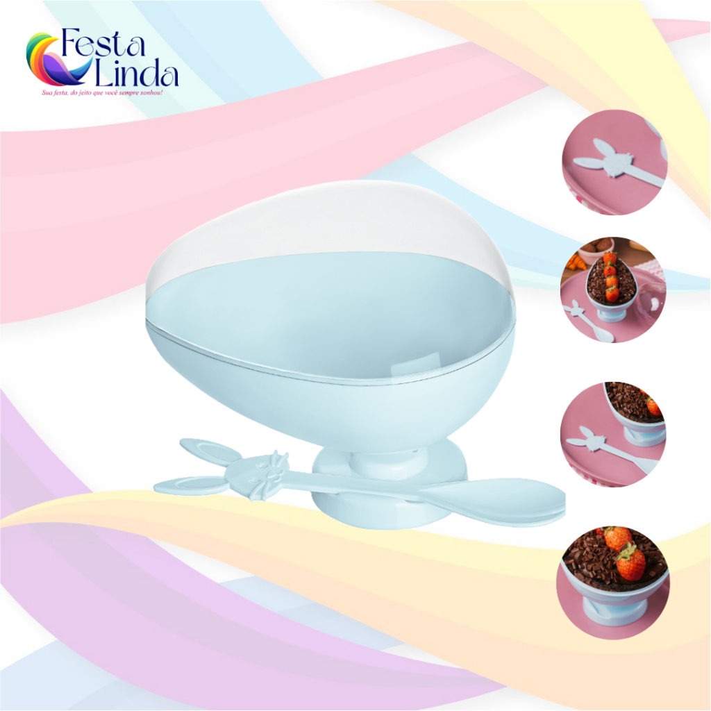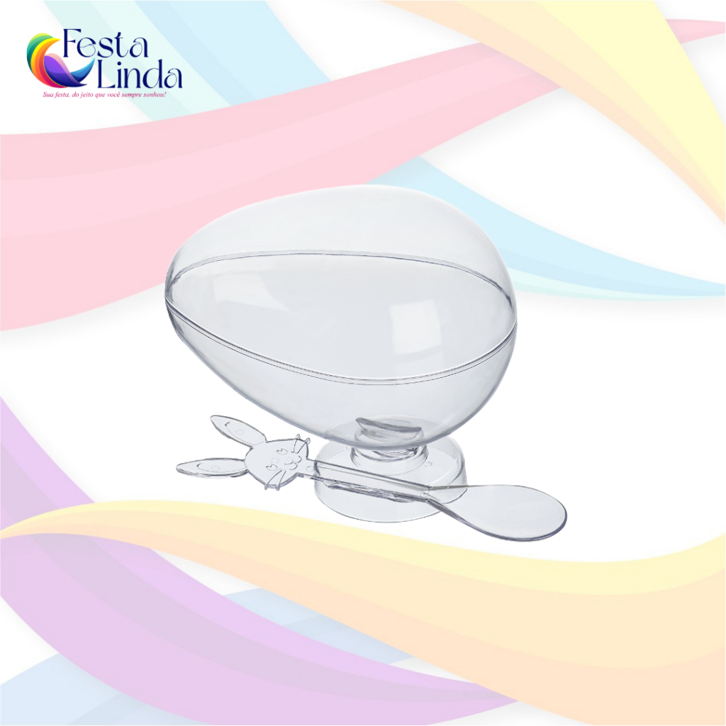 Taça Ovo Páscoa Acrílico 350g + Tampa + Colher De Coelho