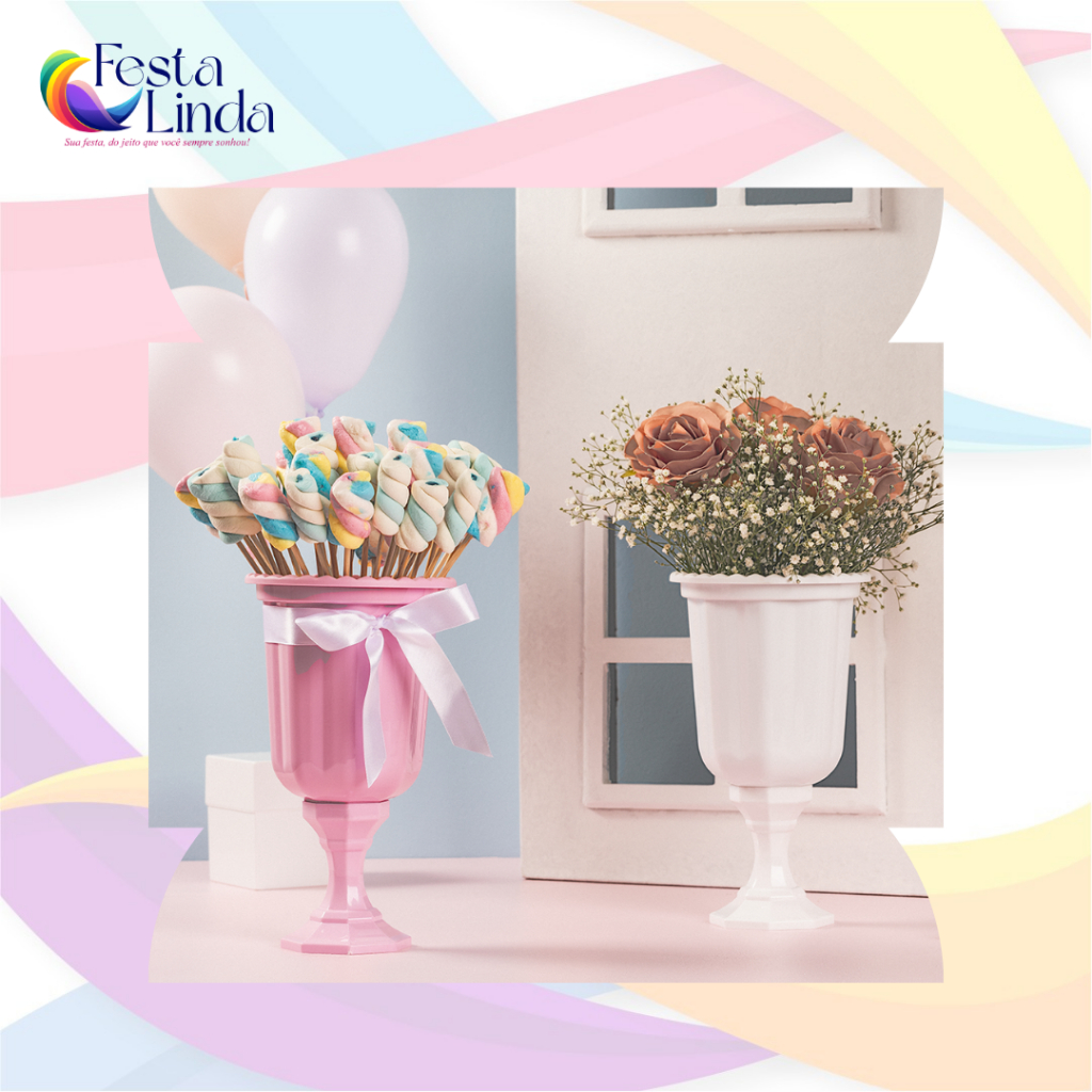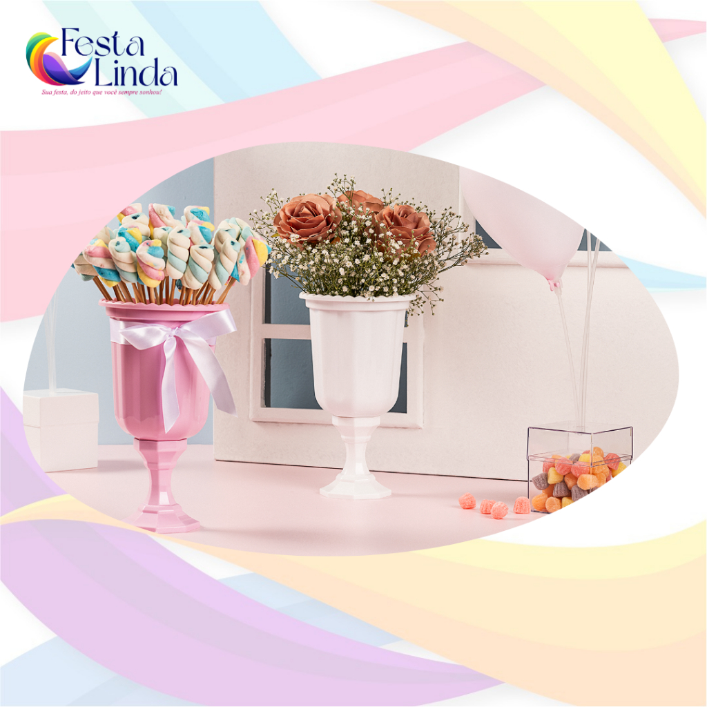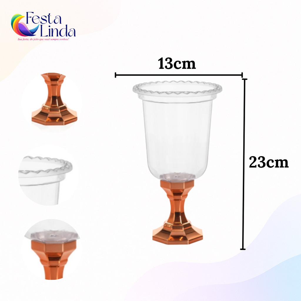 KIT COM 2 UNIDADES VASOS GREGO DECORATIVO LINHA DIAMANTE 850 ML - CRISTAL CROMADO ROSE GOLD
