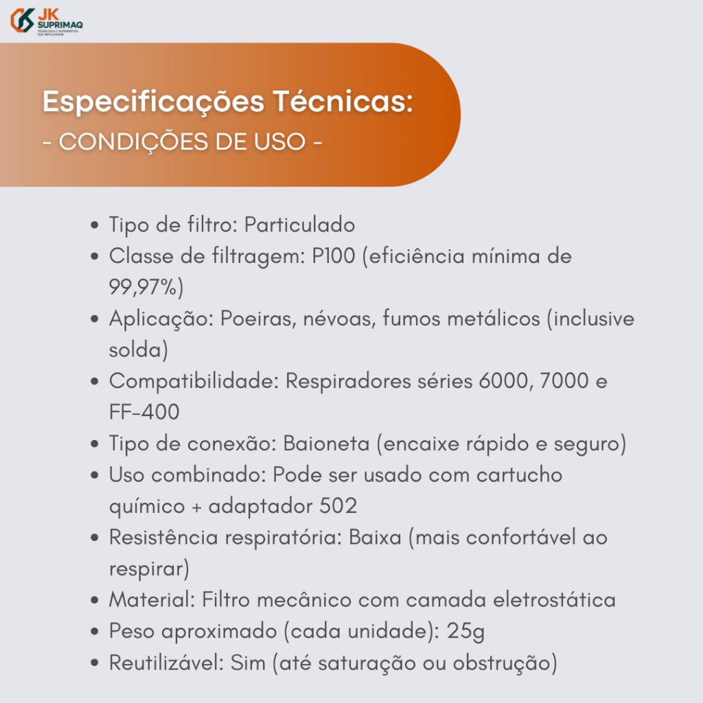 Kit 1 Máscara Respirador 6200 + 6 Filtros 2091 P100 mascara para soldador funileiro pintura poeira