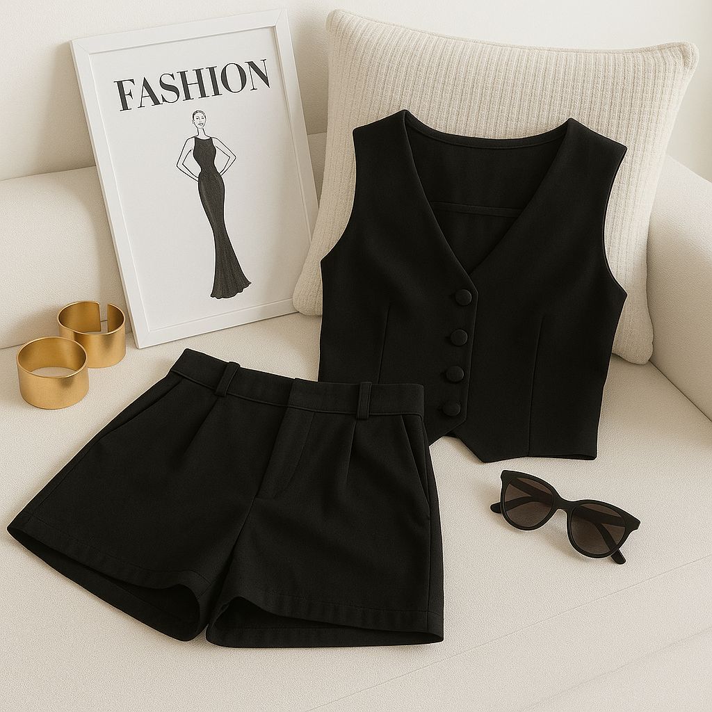 Conjunto Feminino Alfaiataria Luxo - Colete e Short Elegante