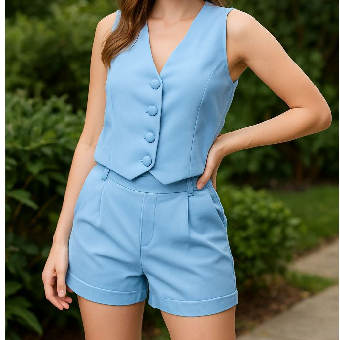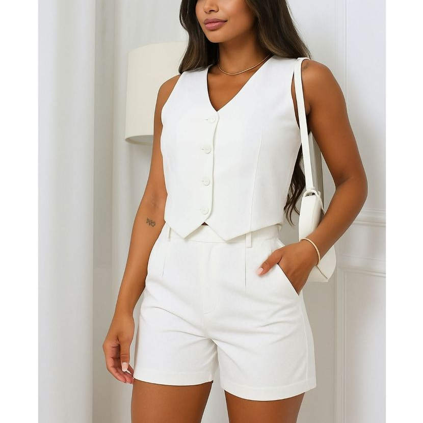 Conjunto Feminino Alfaiataria Luxo - Colete e Short Elegante Chic