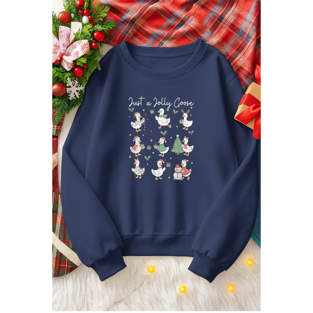 Moletom Gola Careca Just a Jolly Goose | Gansos Natalinos Divertidos | Estilo Fofo e Festivo
