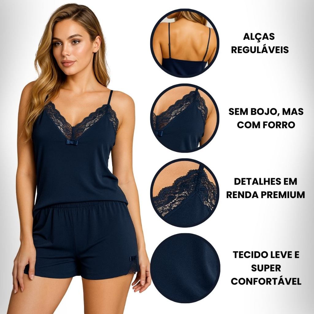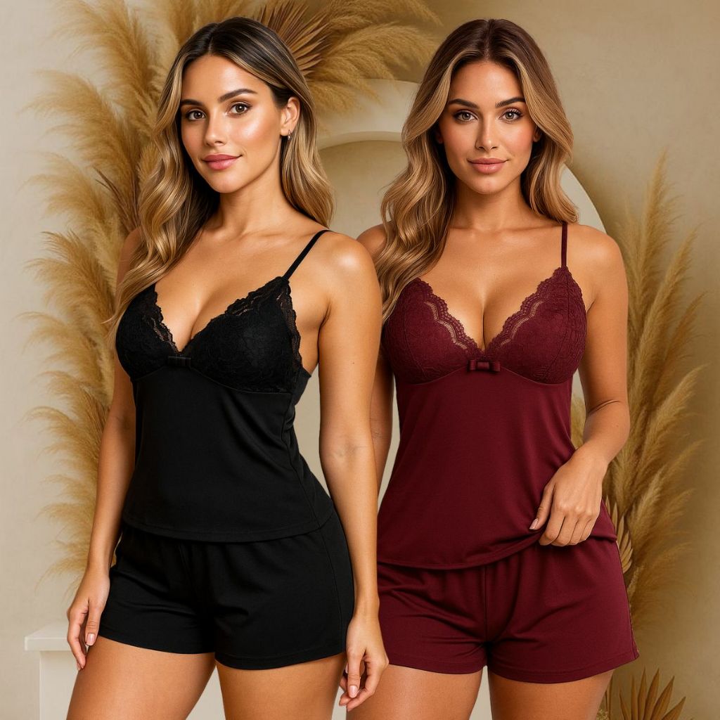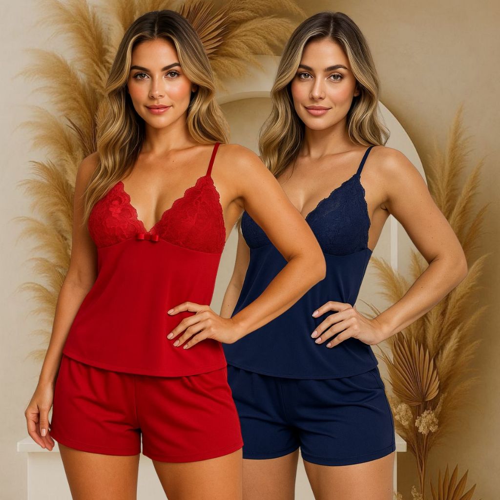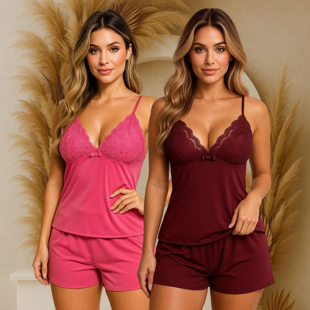 Kit 2 Baby Doll Renda Short Delicada Sensual Pijama Confortável