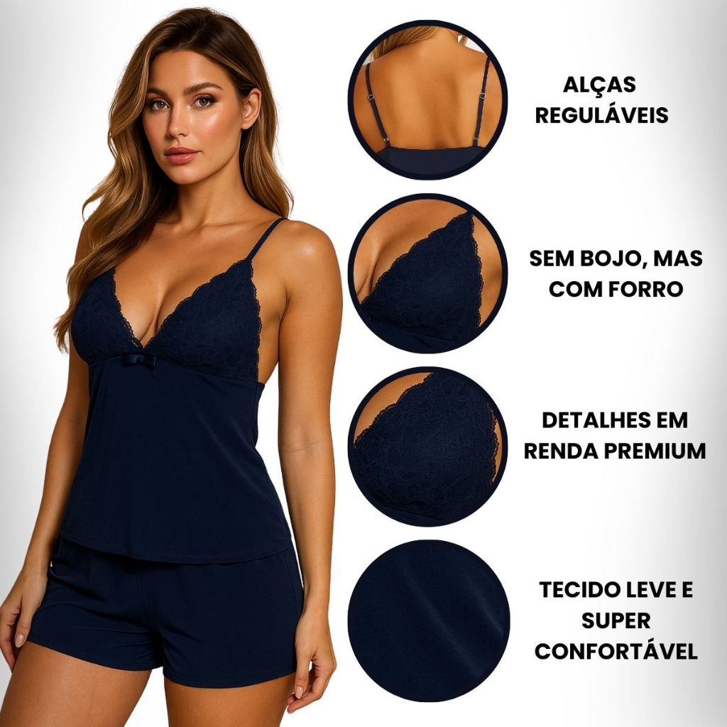 Baby Doll Pijama Confortável Sem Bojo Short Doll Renda Liganete Feminino