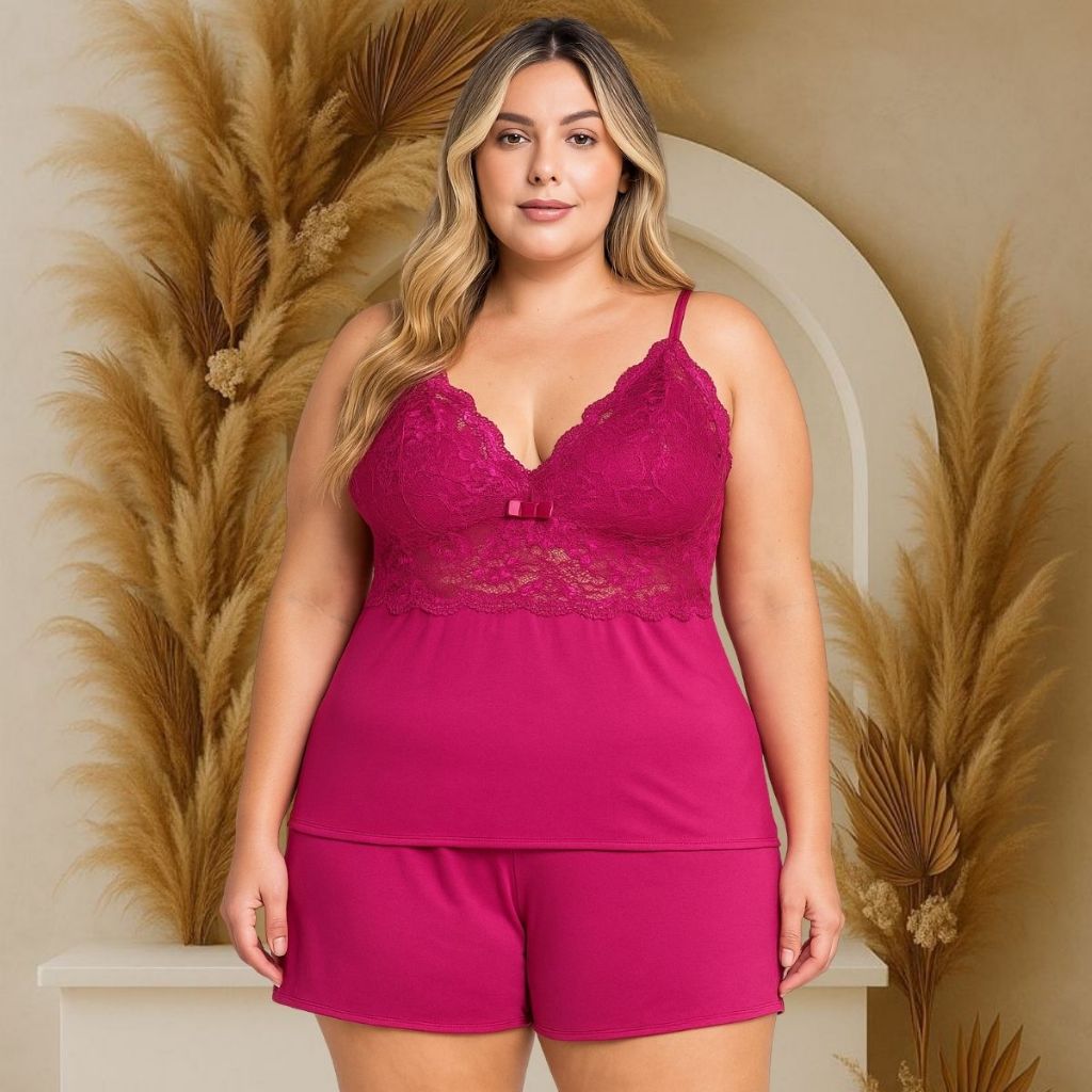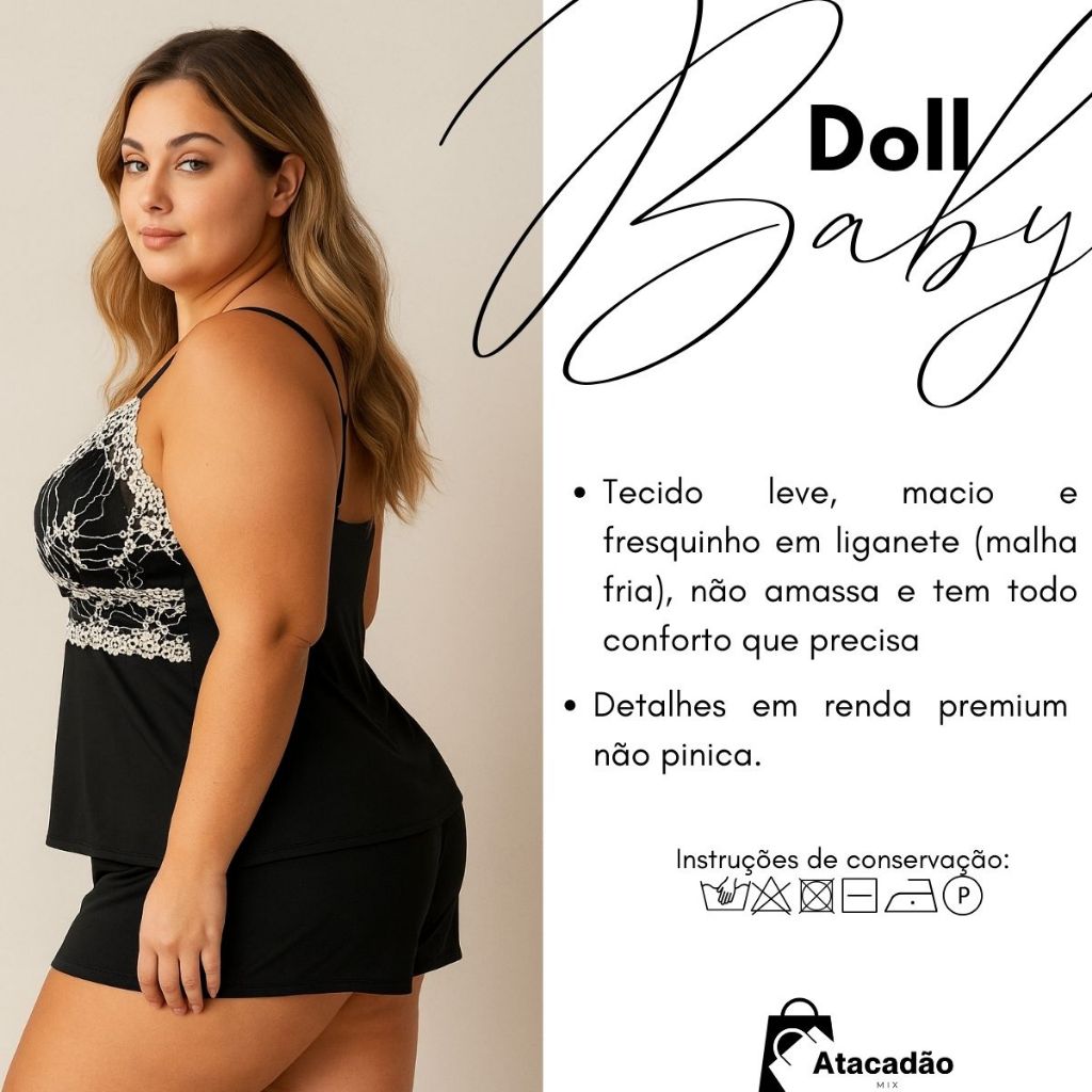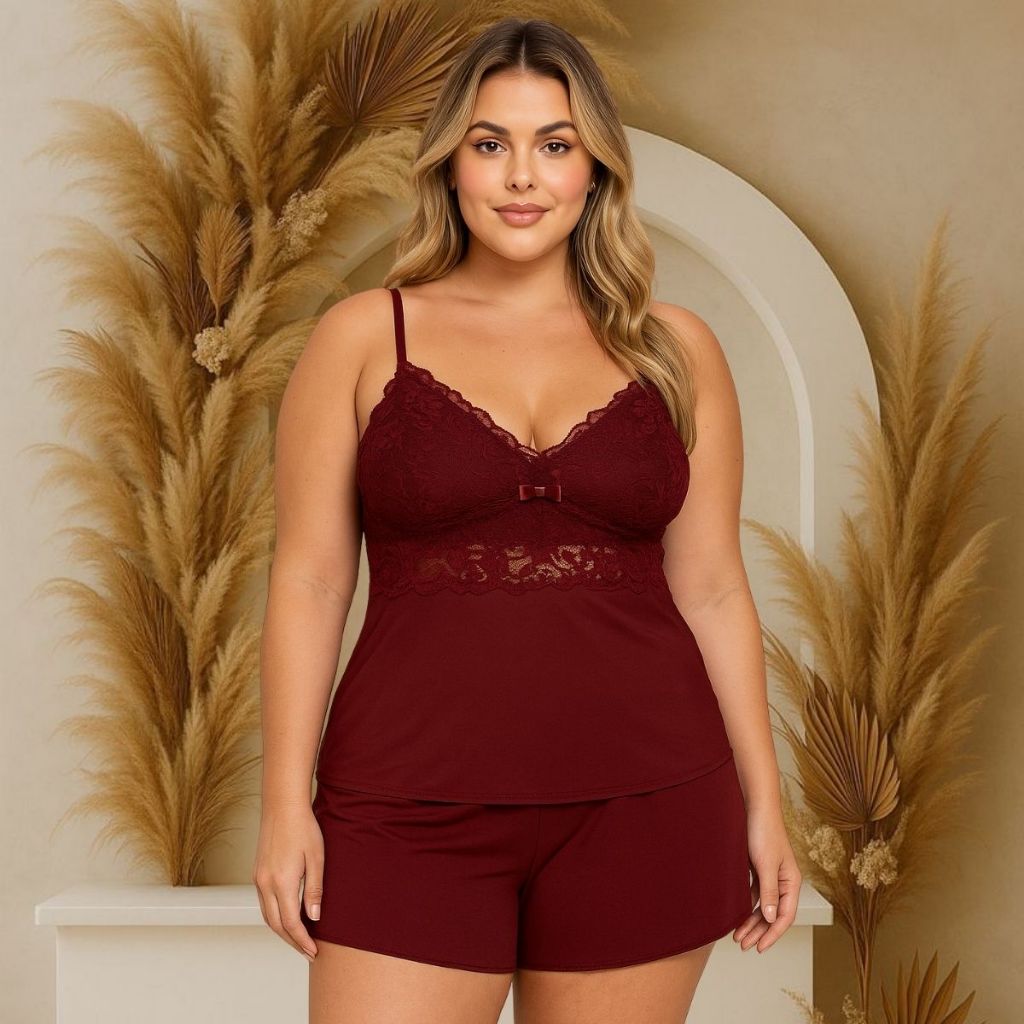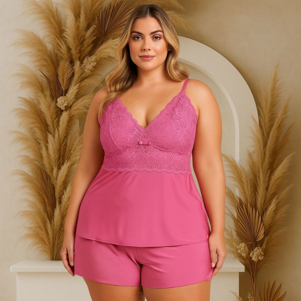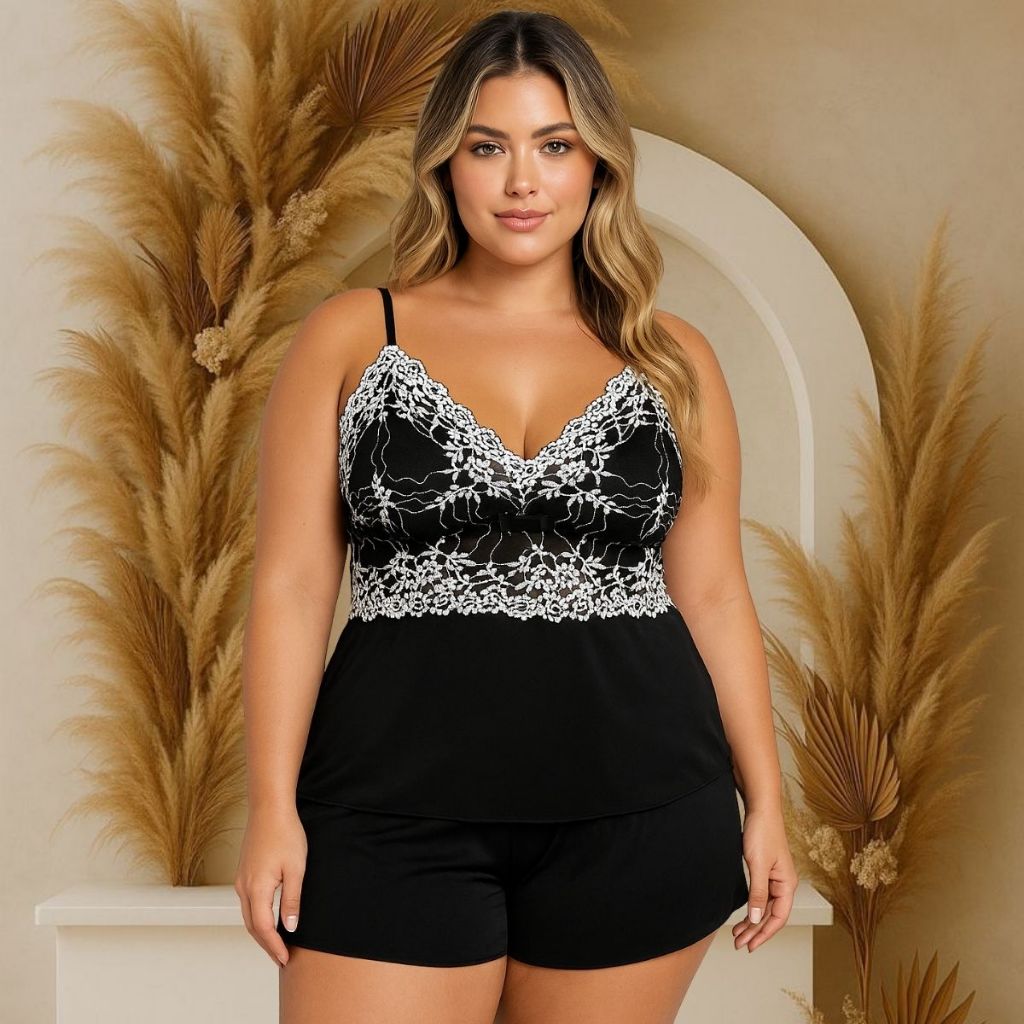 Baby Doll Plus Size Short Renda Delicada Alcinha Confortável