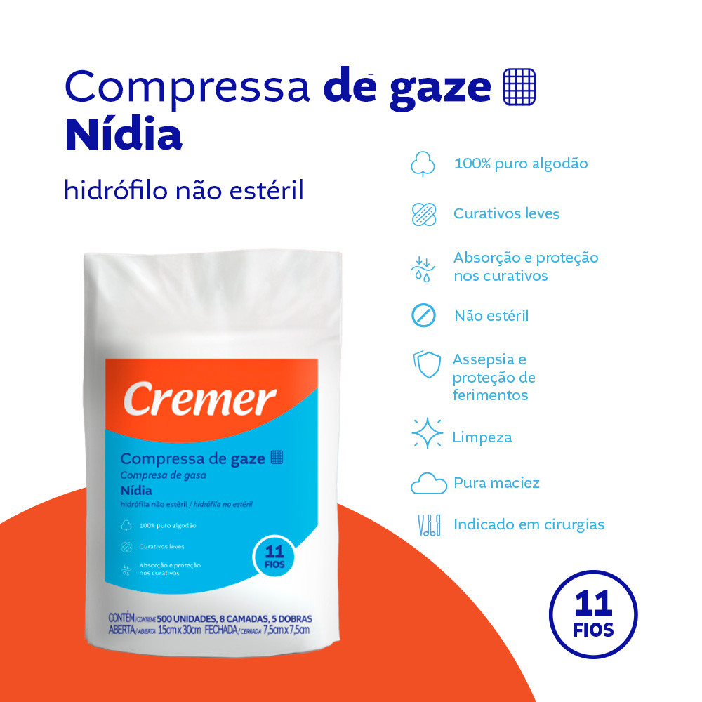 Compressa de Gaze Nidia 7,5cmx7,5cm 500 Un