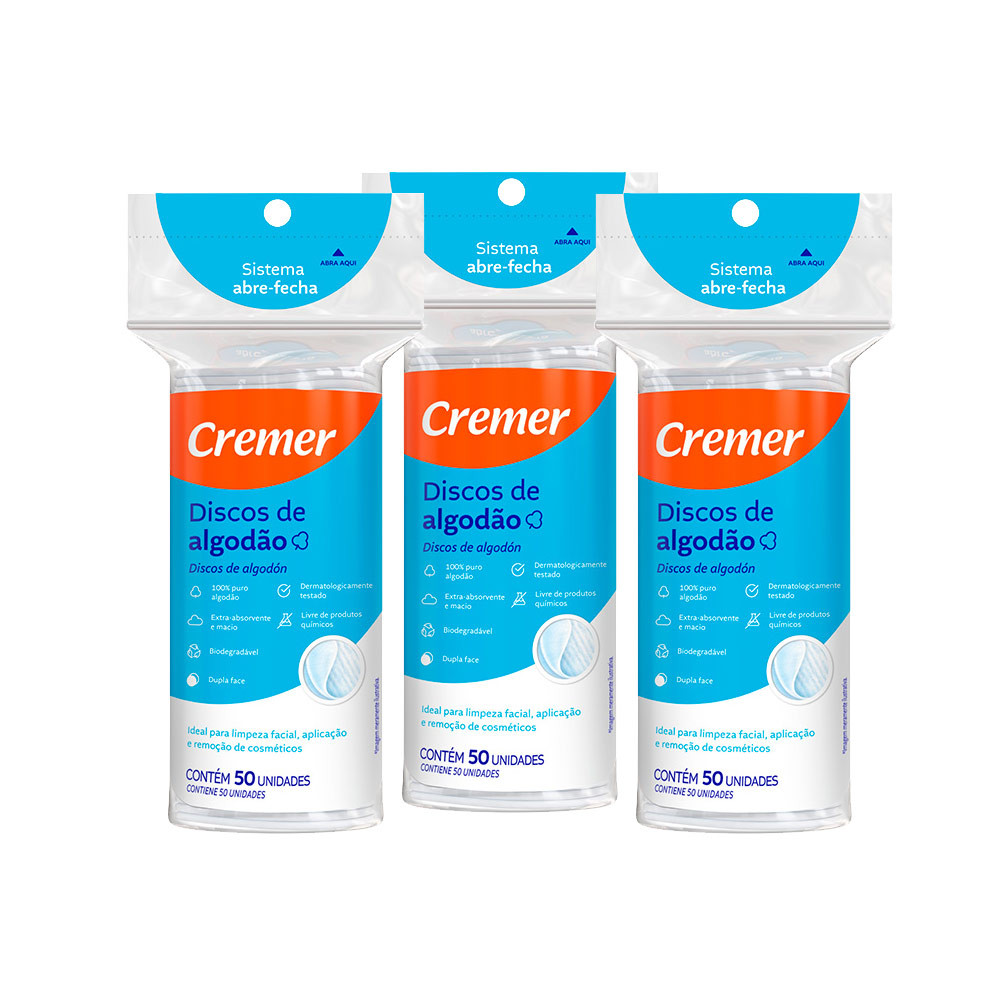 Pack 3 Algodão em Disco Dupla Face 150 Unidades Cremer