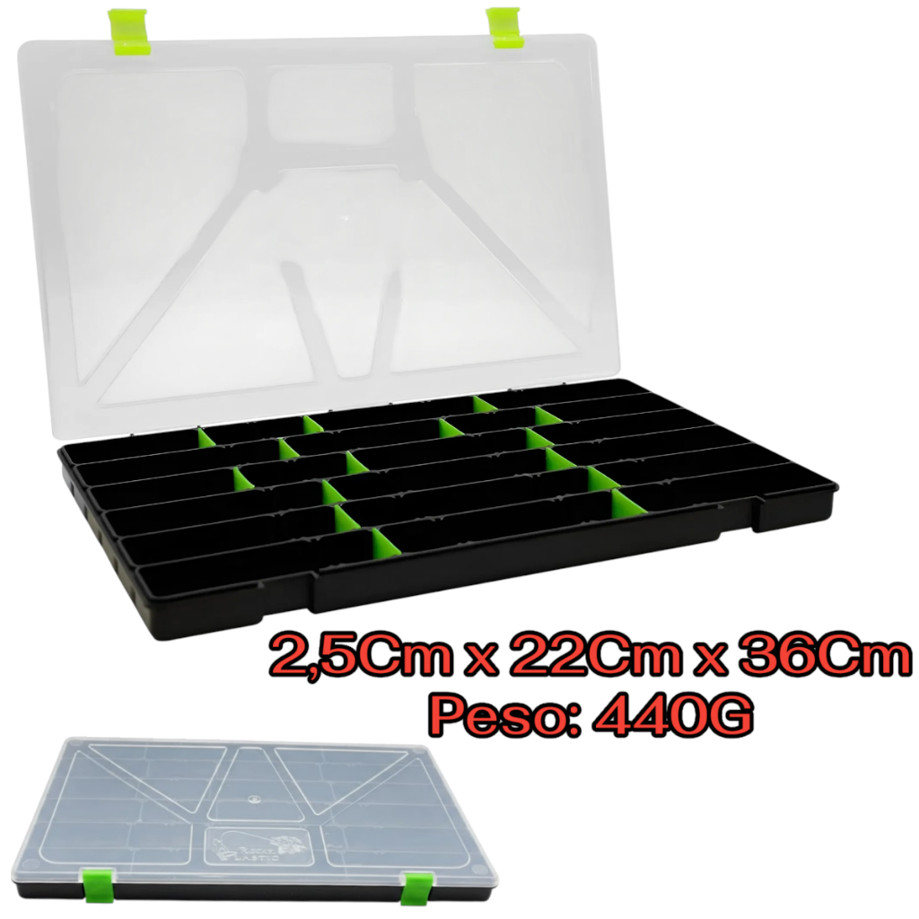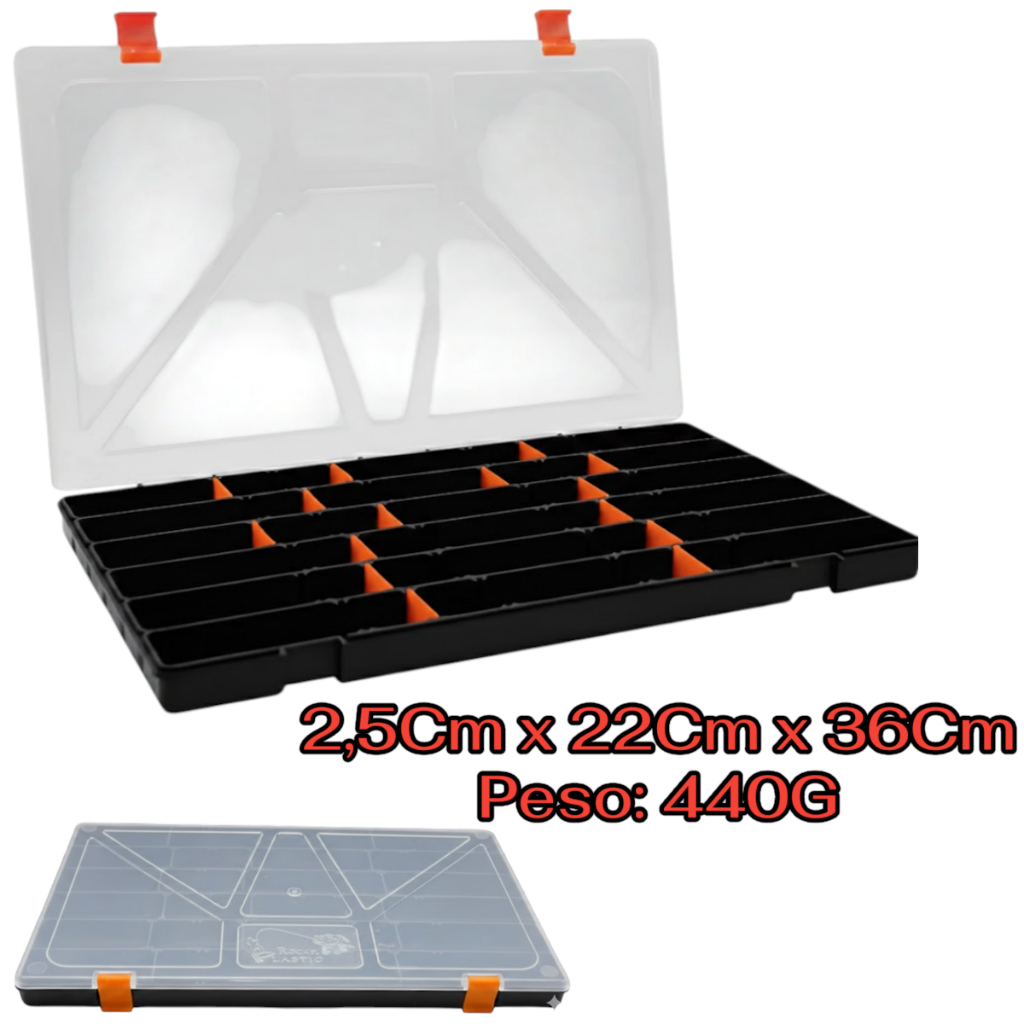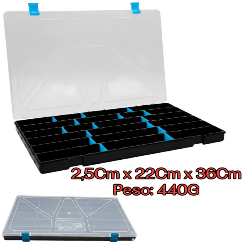 Estojo Organizador Caixa De Isca Artifical Box 23 Preto Tampa Transparente 22 Divisórias - Rochel Pesca