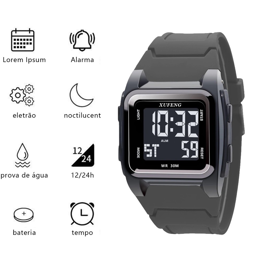 Relógio digital esportivo à prova d'água masculino Xufeng