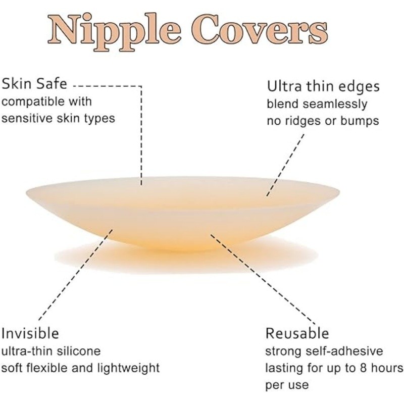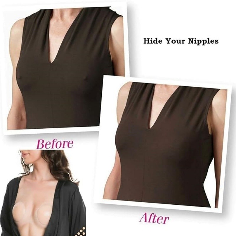 Pacote com 12 adesivos de silicone reutilizáveis para mamilos, adesivos invisíveis para mamilos para mulheres