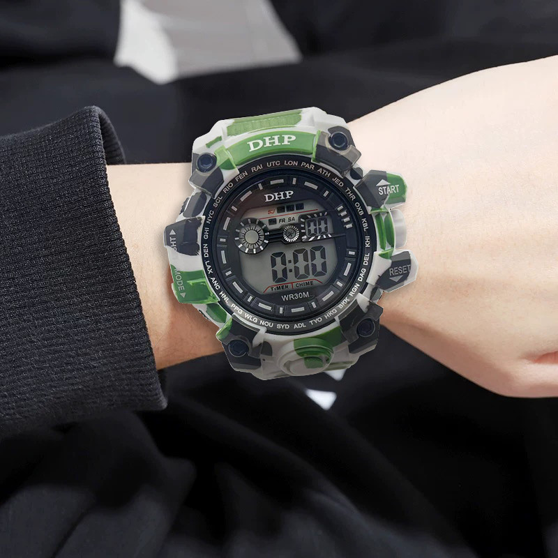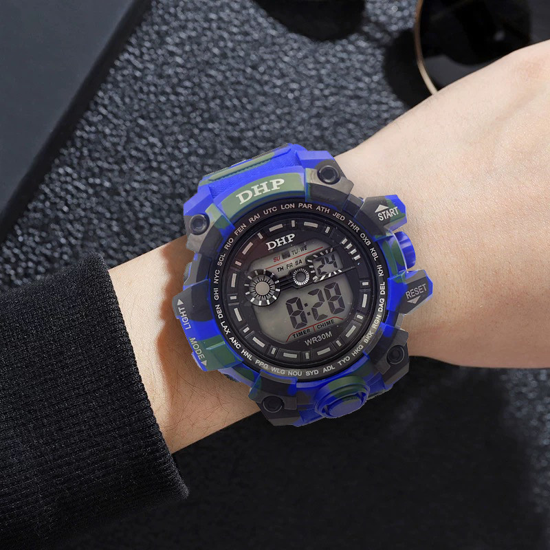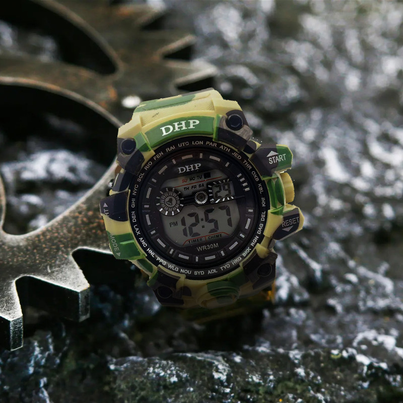 Relógio esportivo digital à prova d'água de silicone masculino DHP
