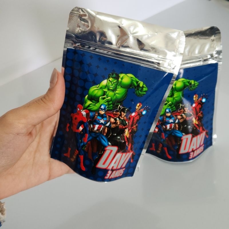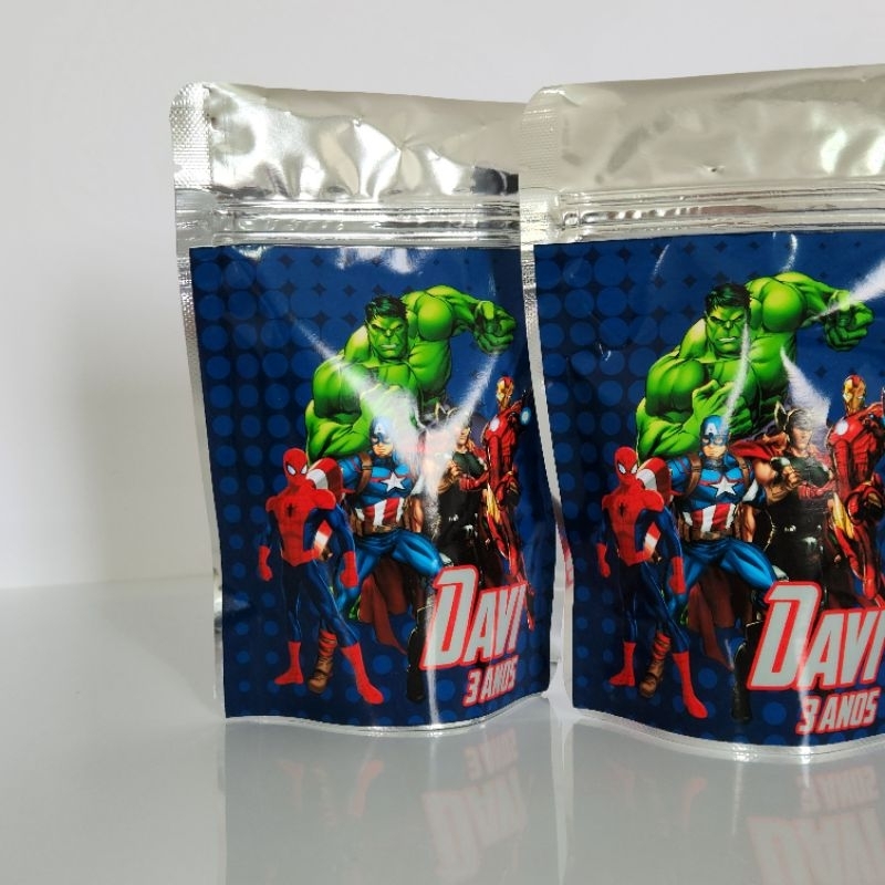 SAQUINHO METALIZADO MARVEL SUPER HERÓIS LEMBRANCINHA PERSONALIZADA PARA FESTA INFANTIL MENINO