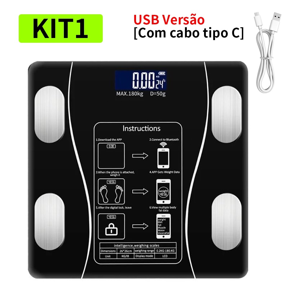 Profissional Balança Bioimpedância Digital lmc Aplicativo Bluetooth, USB Fitness Treino 180kg