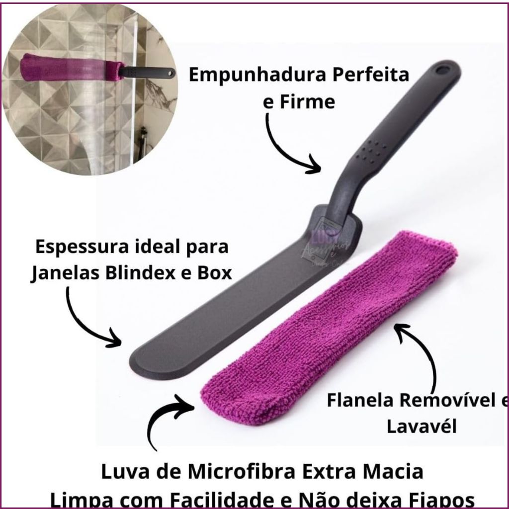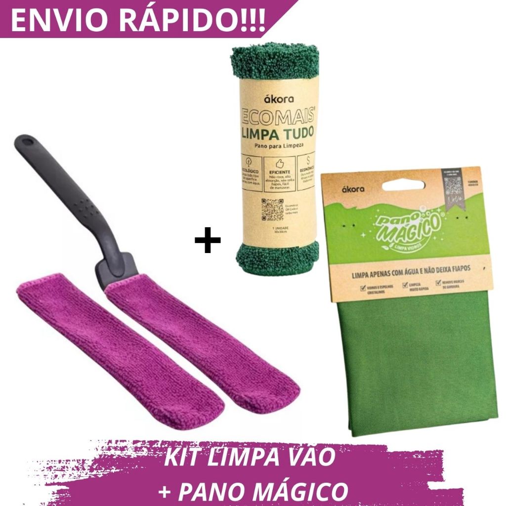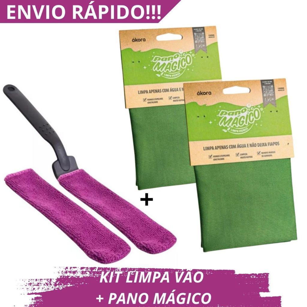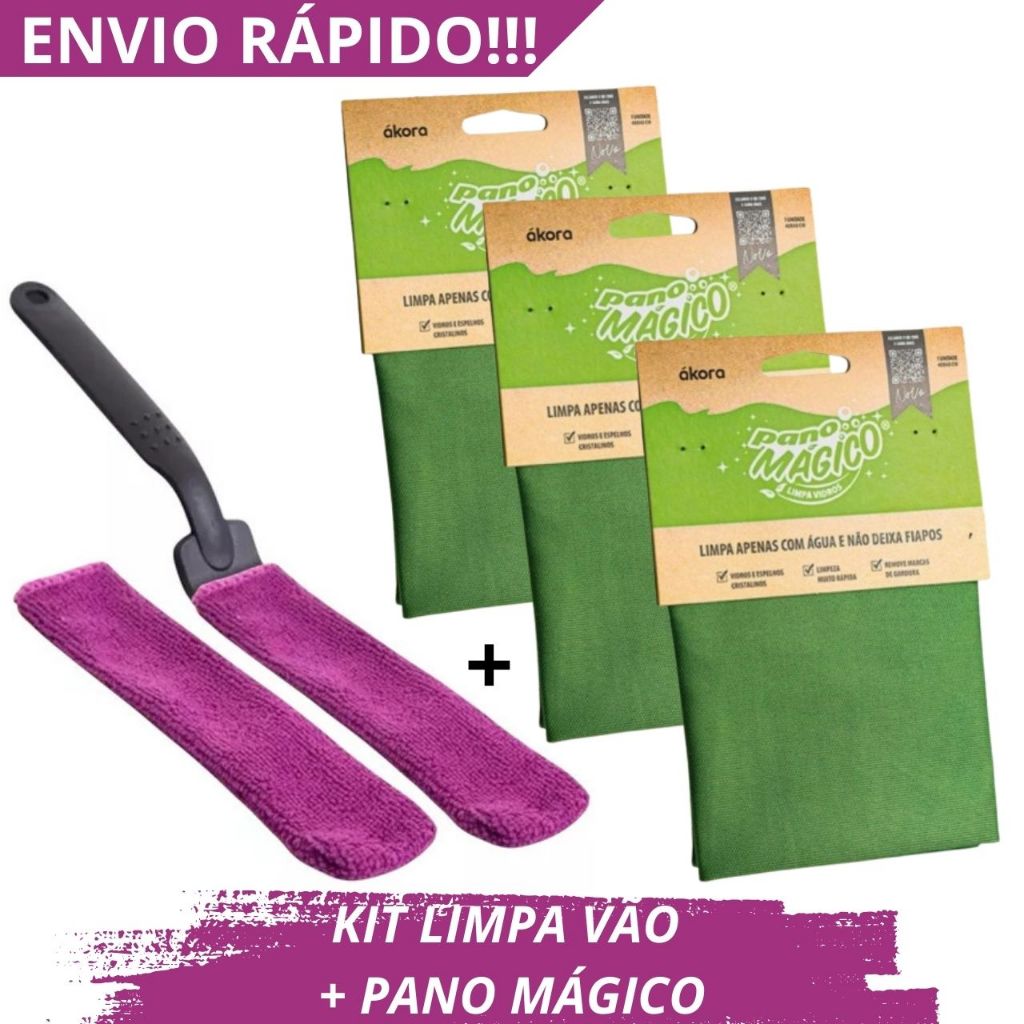 kit Limpeza Vão Limpa Vidro Janela Limpa Box Blindex Ákora Limpa Canto 1 un + Pano Mágico Pano de Limpeza 1 a 3 un