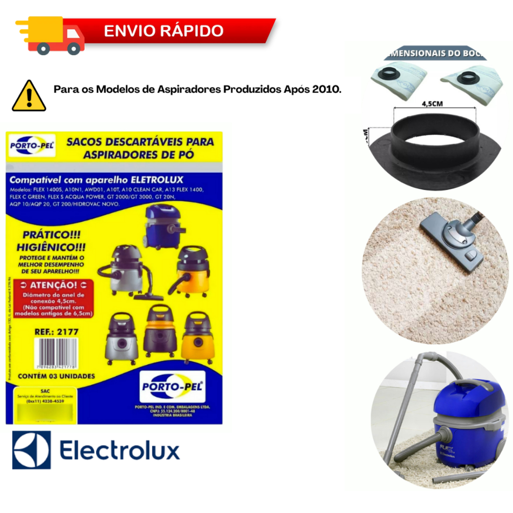 Saco Aspirador De Pó Electrolux AQP10 AQP20 AWD01 FLEX S SMART A10N1 FLEX 1400 A10T GT2000 9 ou 12un
